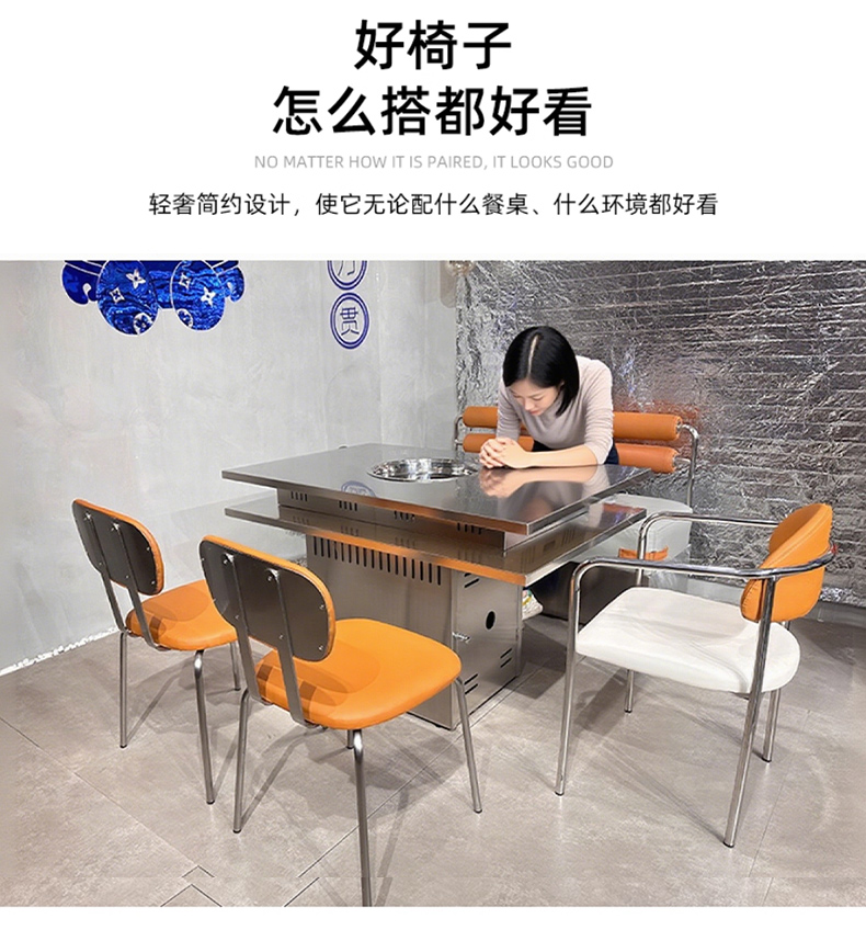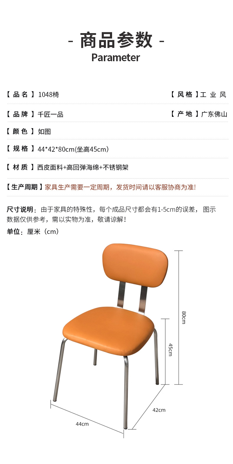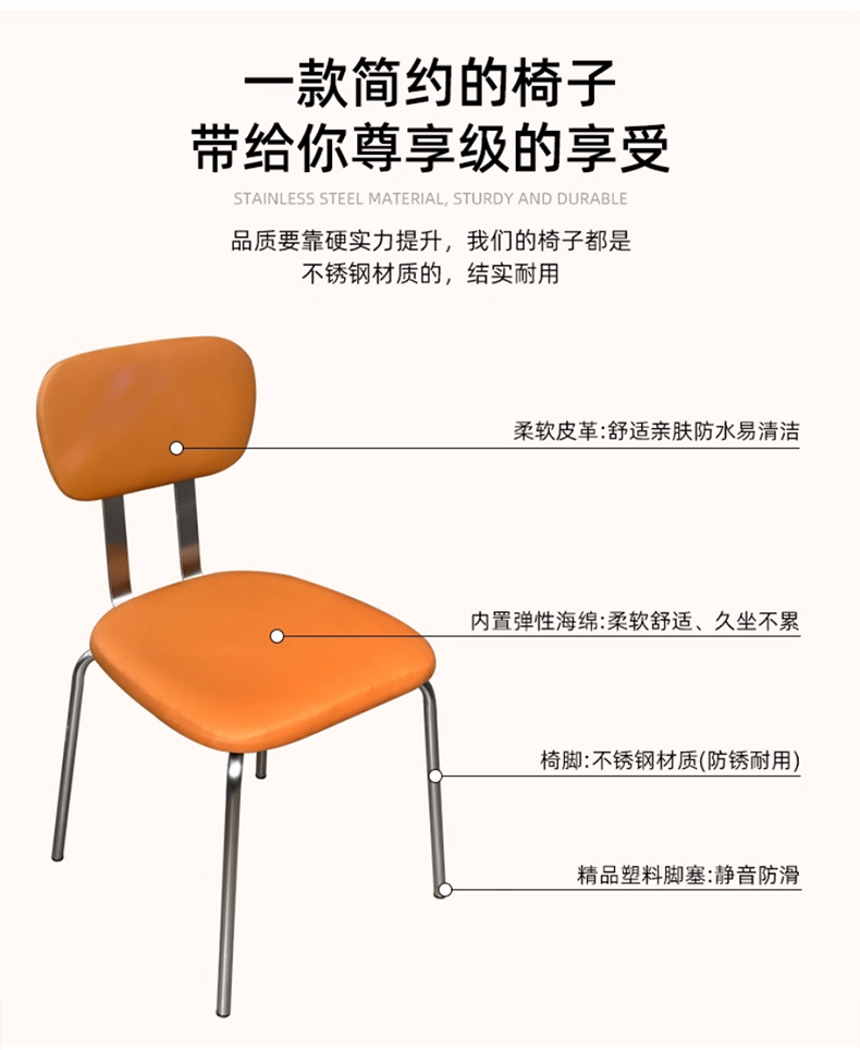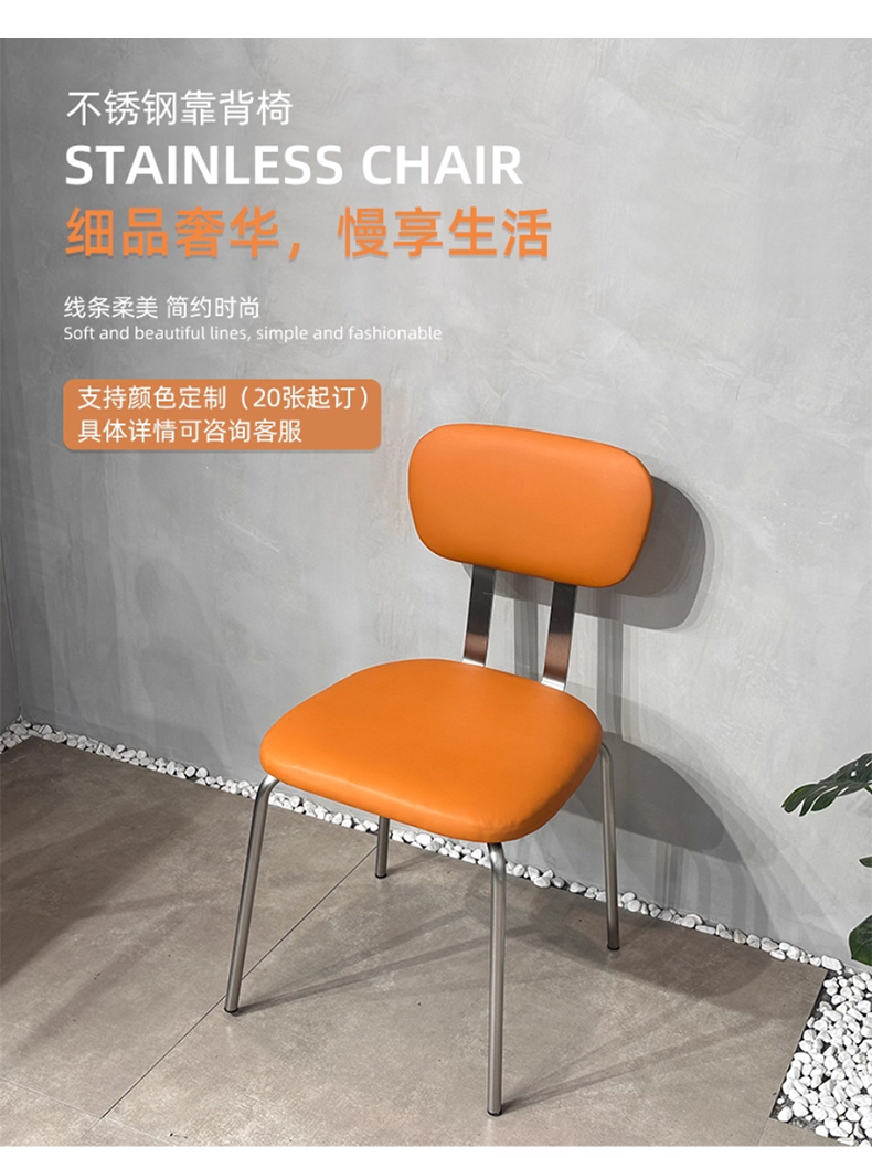 商品名称:千匠一品 工业风风格 西皮面料+高回弹海绵+不锈钢架 时尚大气餐椅1048-J