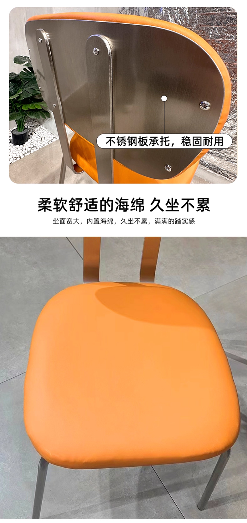 千匠一品 工业风风格 西皮面料+高回弹海绵+不锈钢架 时尚大气餐椅1048-J