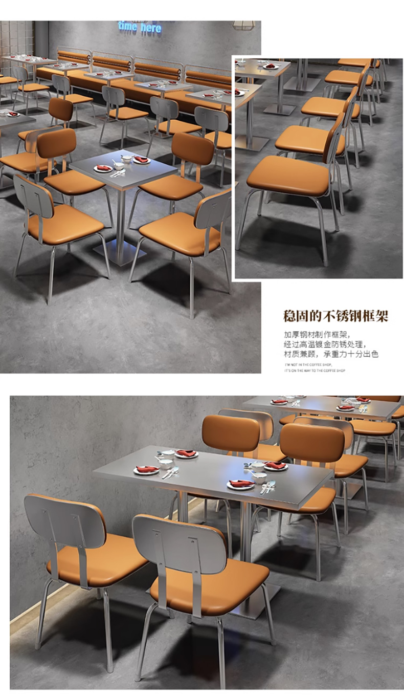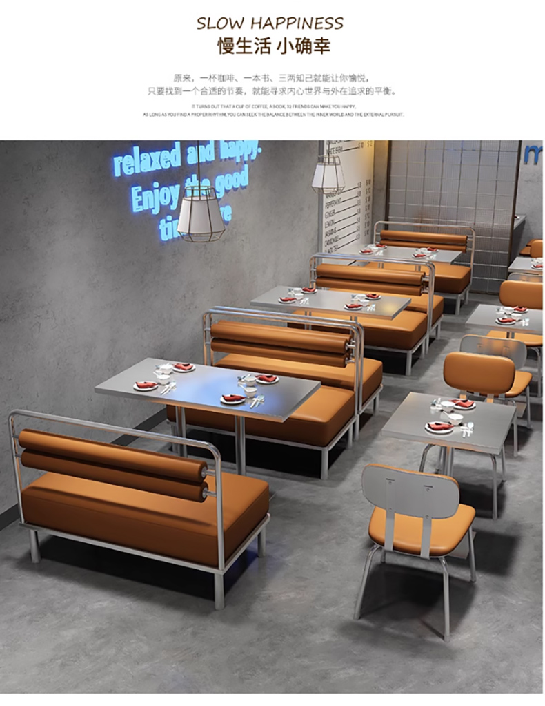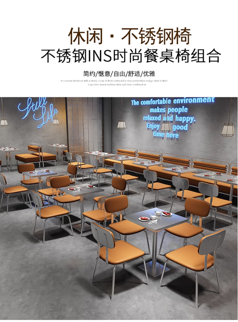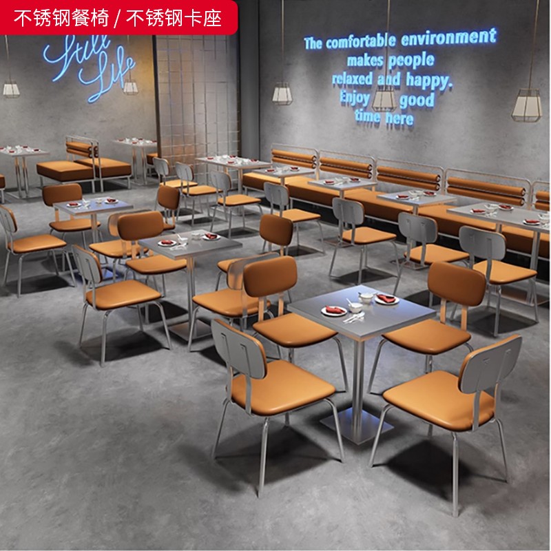 千匠一品 工业风风格 西皮面料+高回弹海绵+不锈钢架 时尚大气不锈钢餐椅不锈钢卡座-J