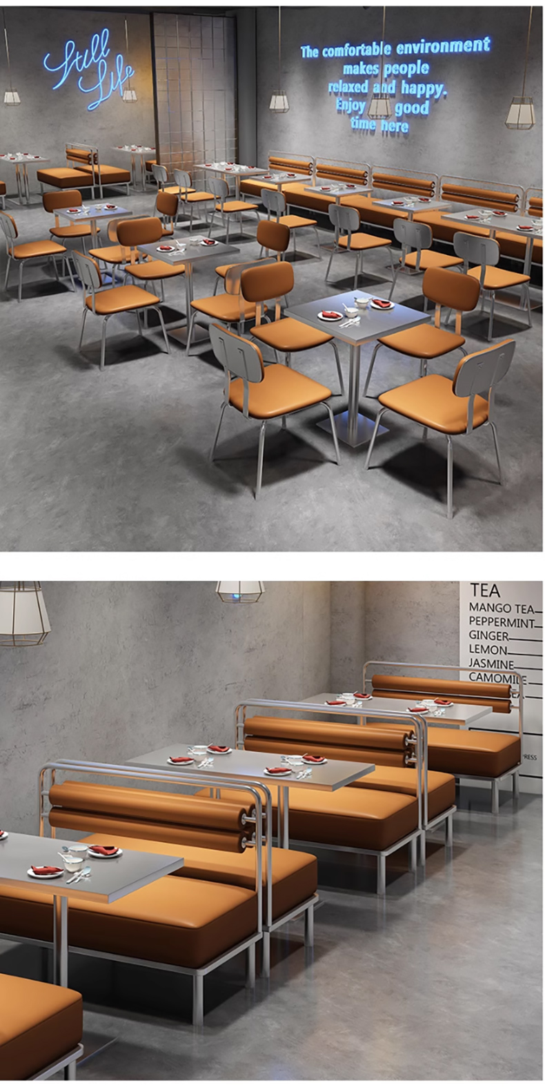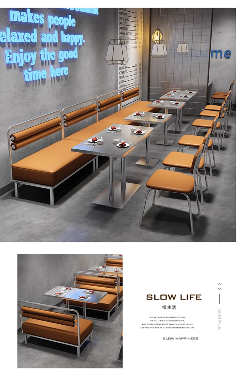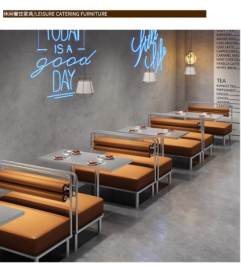 千匠一品 工业风风格 西皮面料+高回弹海绵+不锈钢架 时尚大气不锈钢餐椅不锈钢卡座-J