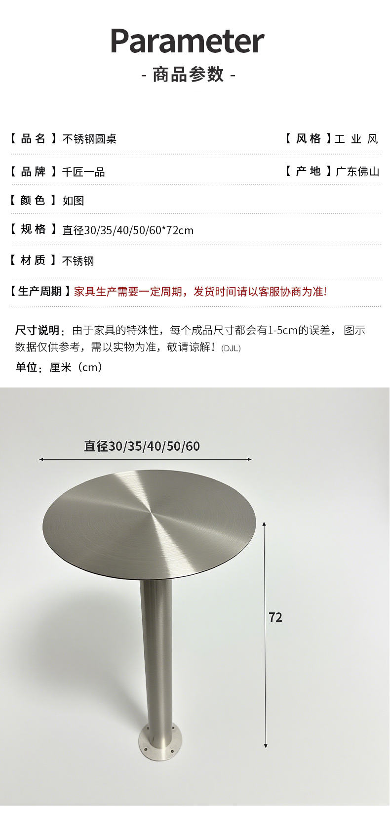 商品名称:千匠一品 工业风风格 不锈钢 时尚简约不锈钢圆桌-J