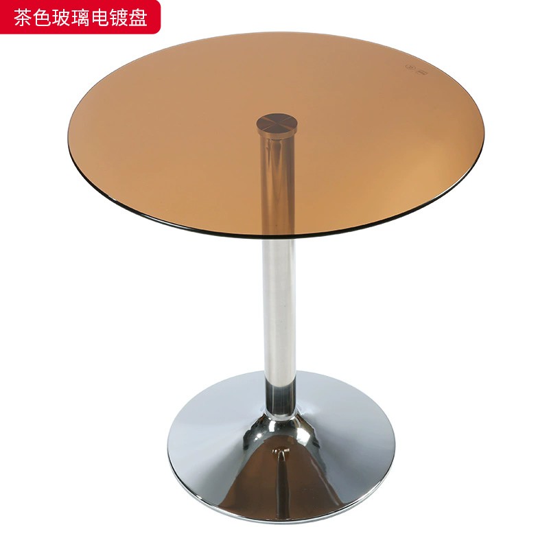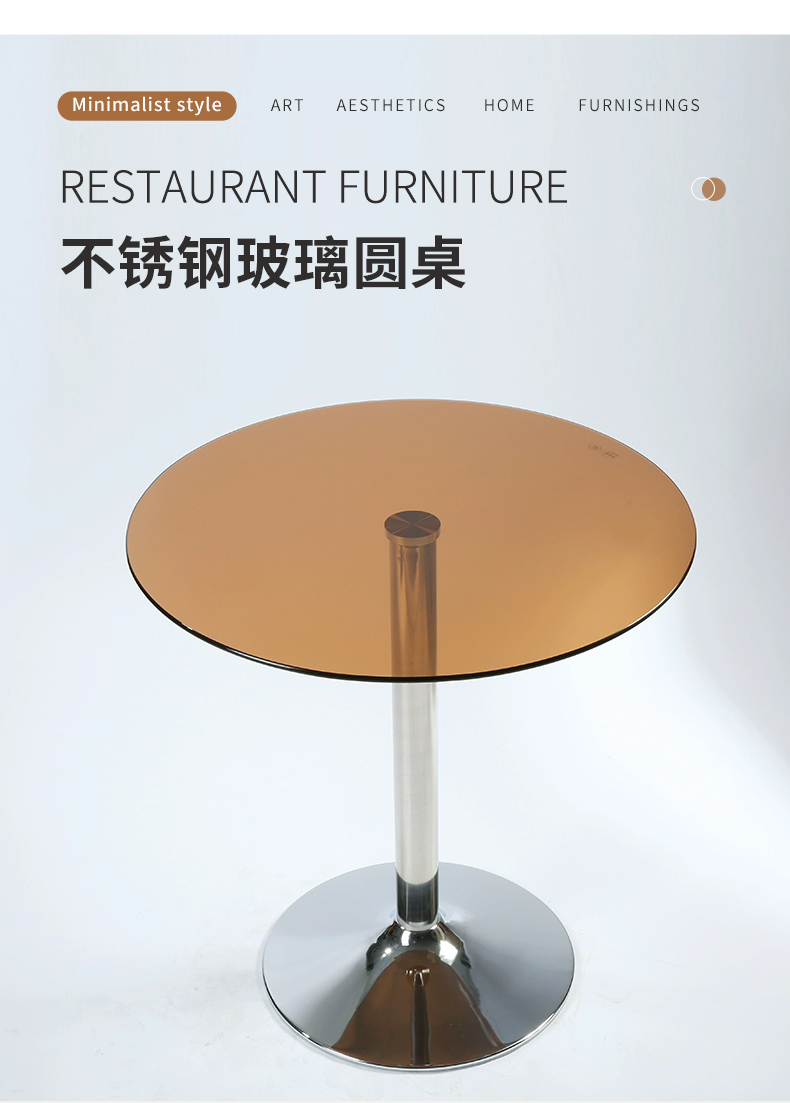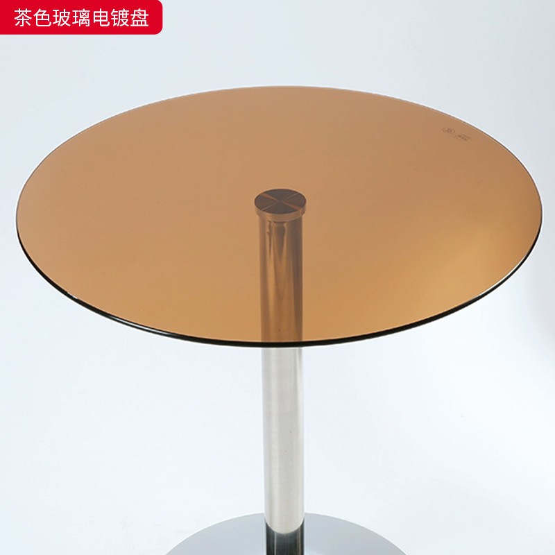 千匠一品 工业风风格 钢化玻璃+电镀不锈钢 时尚大气茶色玻璃电镀盘圆桌-J