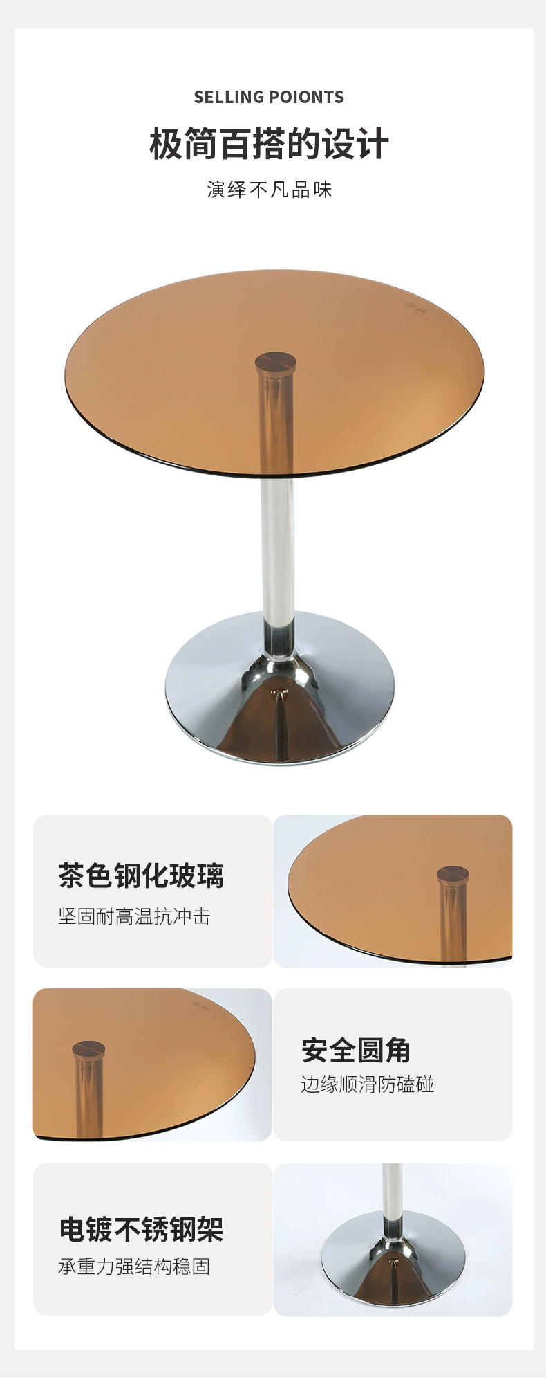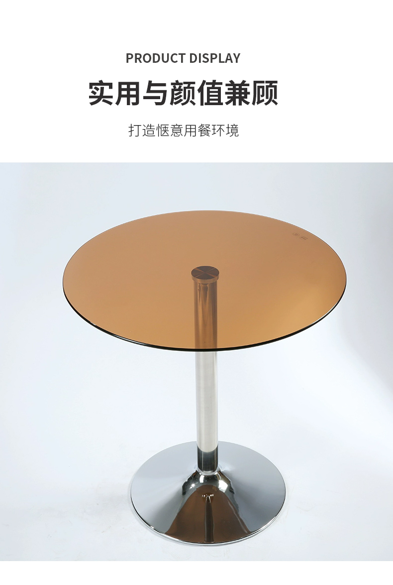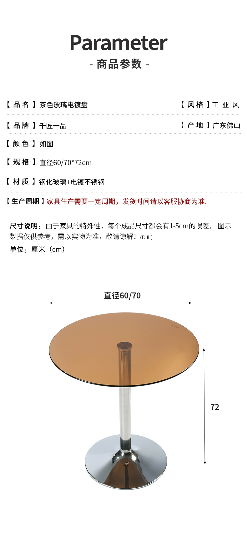商品名称:千匠一品 工业风风格 钢化玻璃+电镀不锈钢 时尚大气茶色玻璃电镀盘圆桌-J