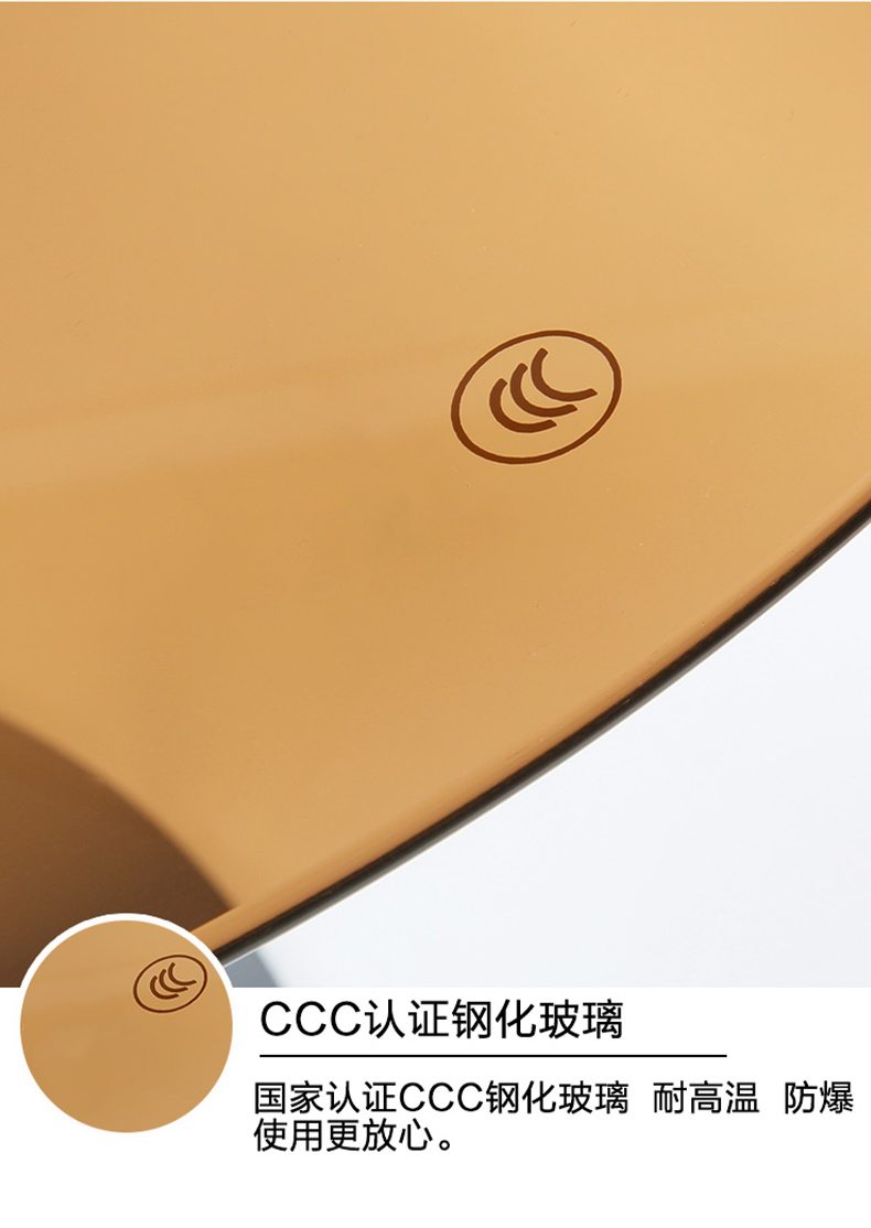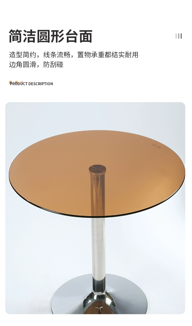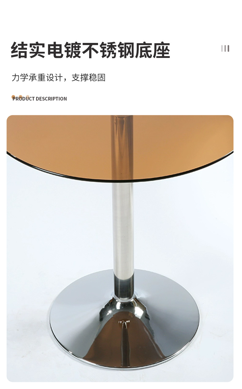 商品名称:千匠一品 工业风风格 钢化玻璃+电镀不锈钢 时尚大气茶色玻璃电镀盘圆桌-J