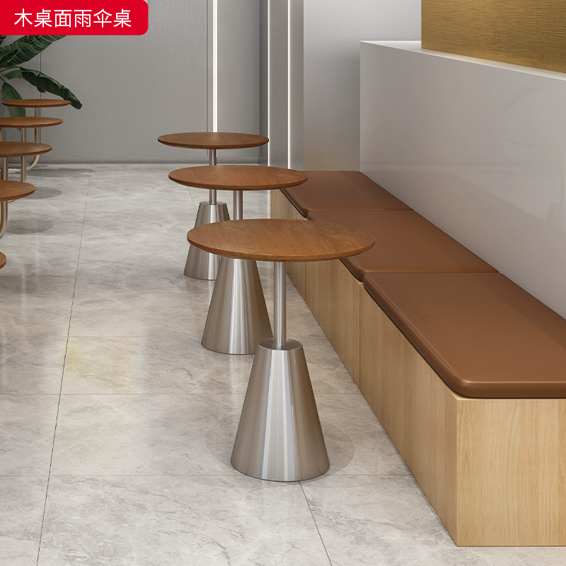 千匠一品 工业风风格 木饰面+实木多层板+不锈钢 时尚大气木桌面雨伞桌-J