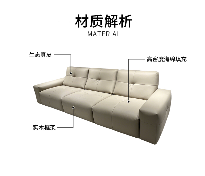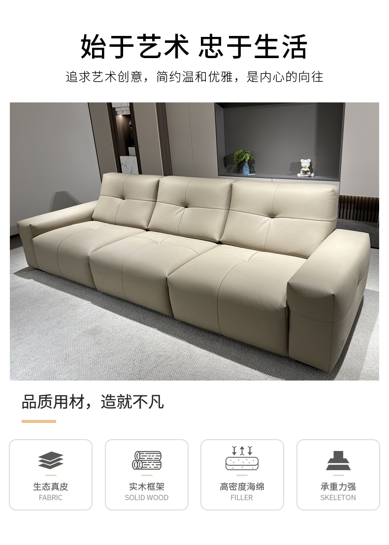千匠一品 现代风格 生态真皮+高密度海绵+实木框架 时尚简约沙发9235-L
