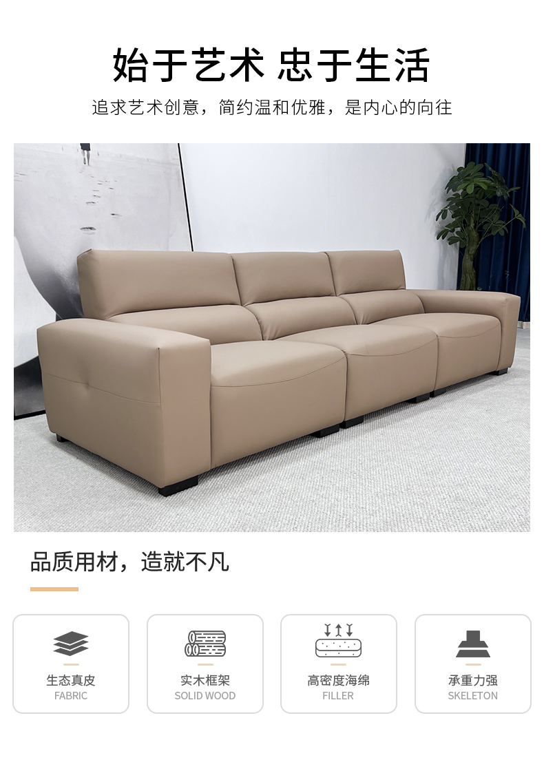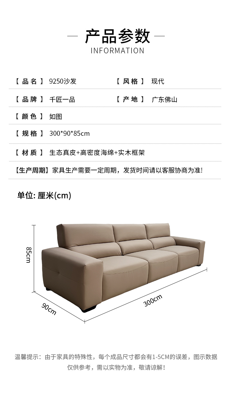 商品名称:千匠一品 现代风格 生态真皮+高密度海绵+实木框架 时尚简约沙发9250-L
