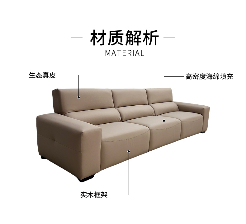 千匠一品 现代风格 生态真皮+高密度海绵+实木框架 时尚简约沙发9250-L
