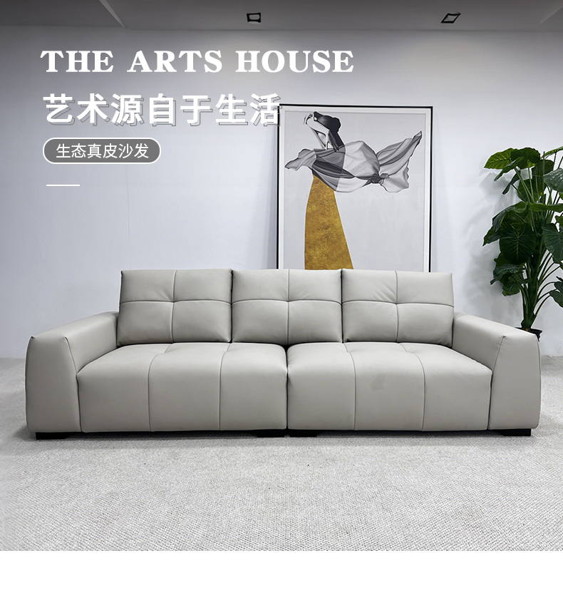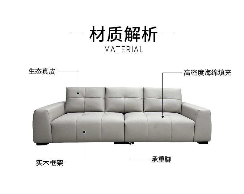 千匠一品 现代风格 生态真皮+高密度海绵+实木框架 时尚大气沙发9253-J