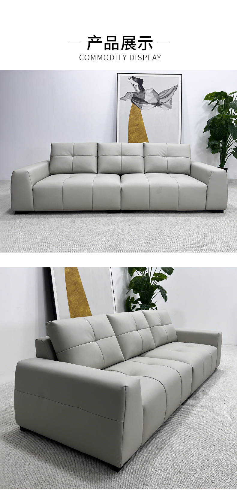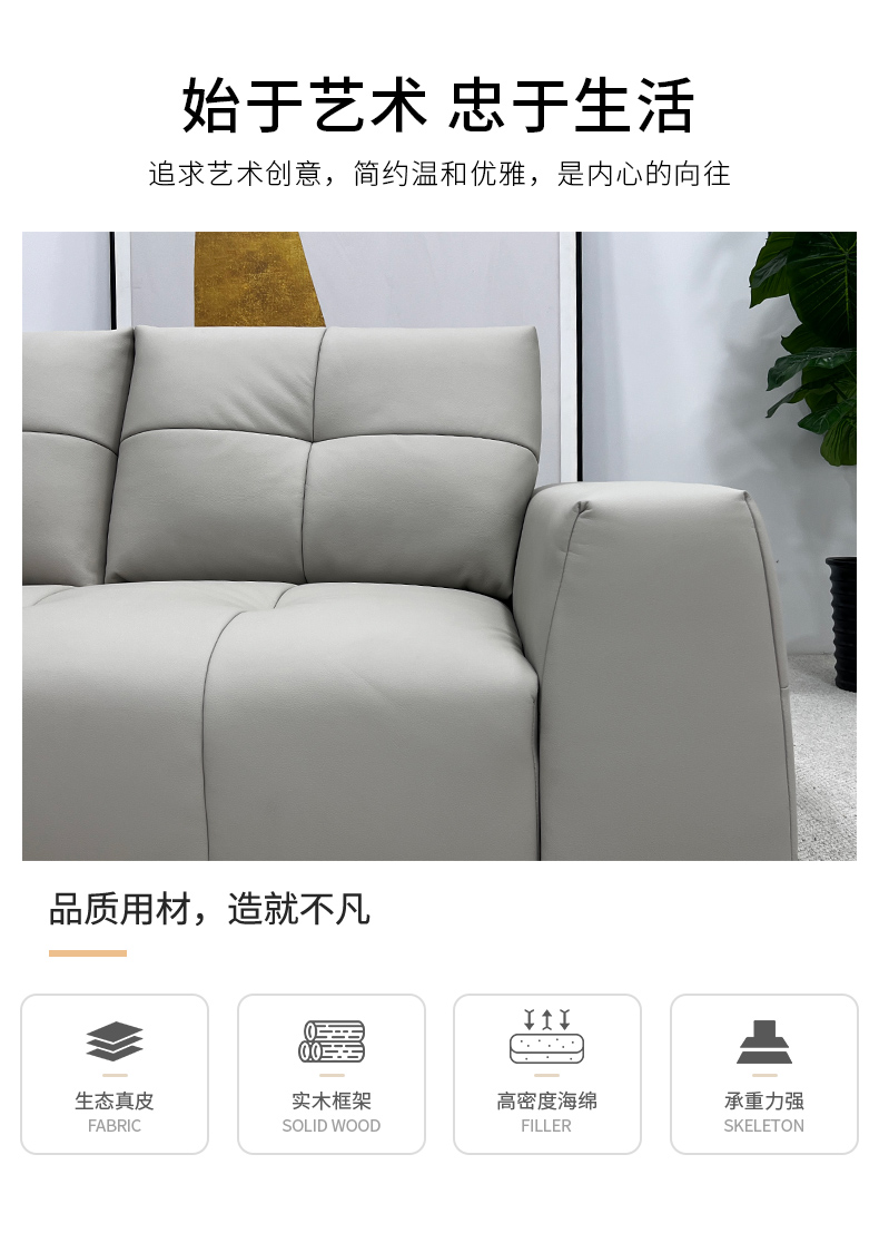 △千匠一品 现代风格 头层牛皮+高密度海绵+落叶松框架+蛇形弹簧+稳固铁架+品质电机 时尚大气沙发QT-C9332-J