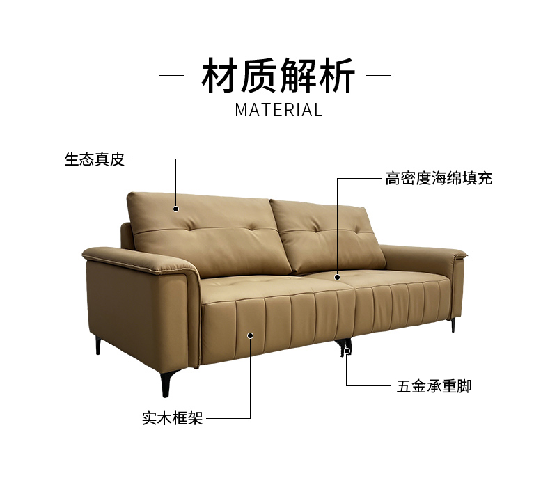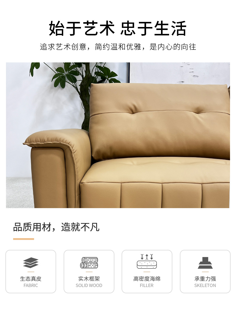 千匠一品 现代风格 生态真皮+高密度海绵+实木框架+五金脚 时尚大气沙发9256-J
