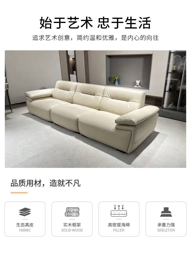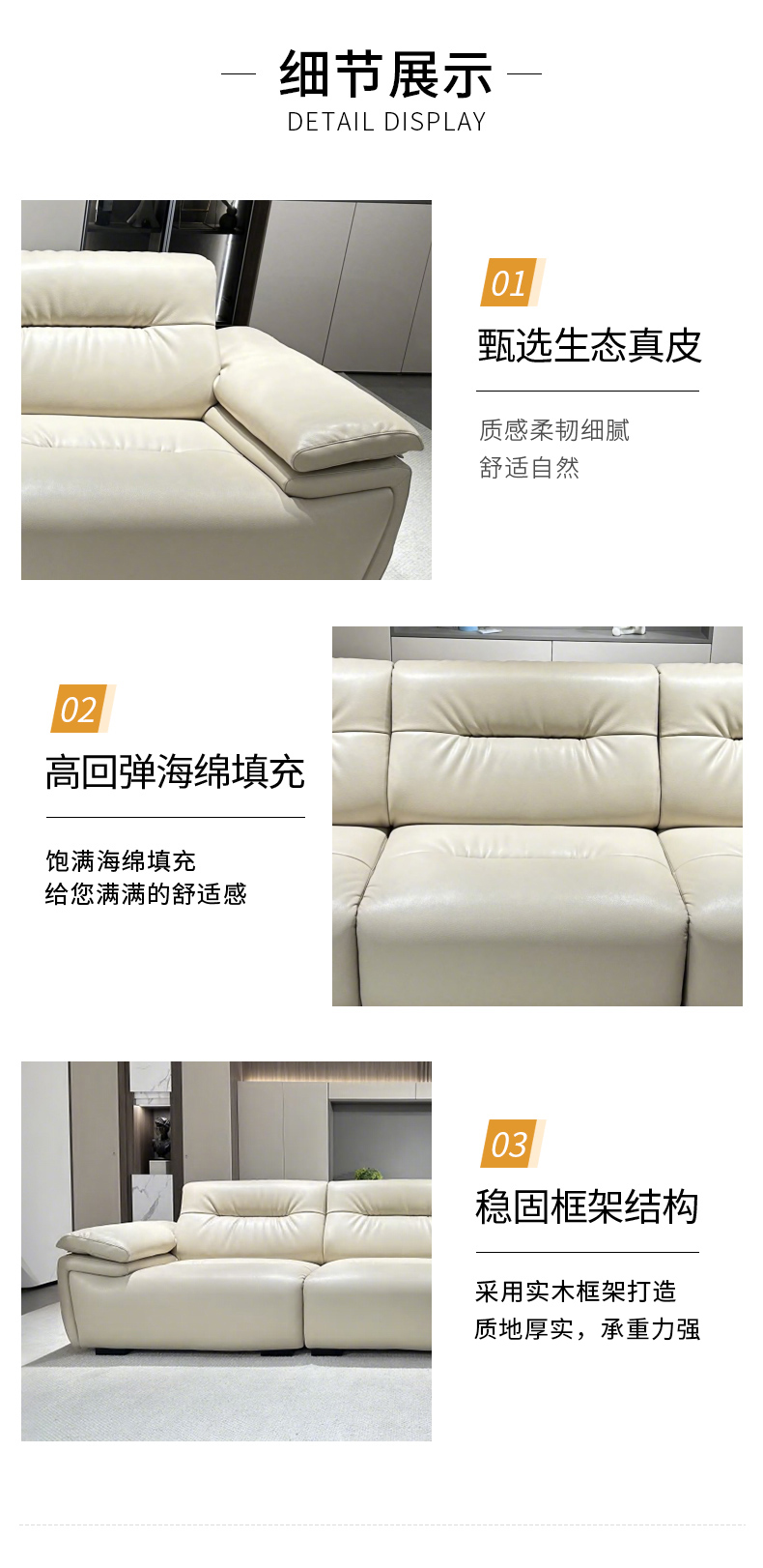 △千匠一品 现代风格 头层牛皮+高密度海绵+落叶松框架+蛇形弹簧+稳固铁架+品质电机 时尚大气沙发QT-C9332-J