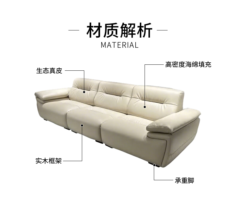 千匠一品 现代风格 生态真皮+高密度海绵+实木框架 时尚大气沙发9253-J