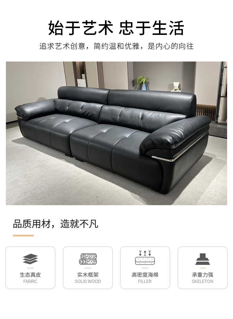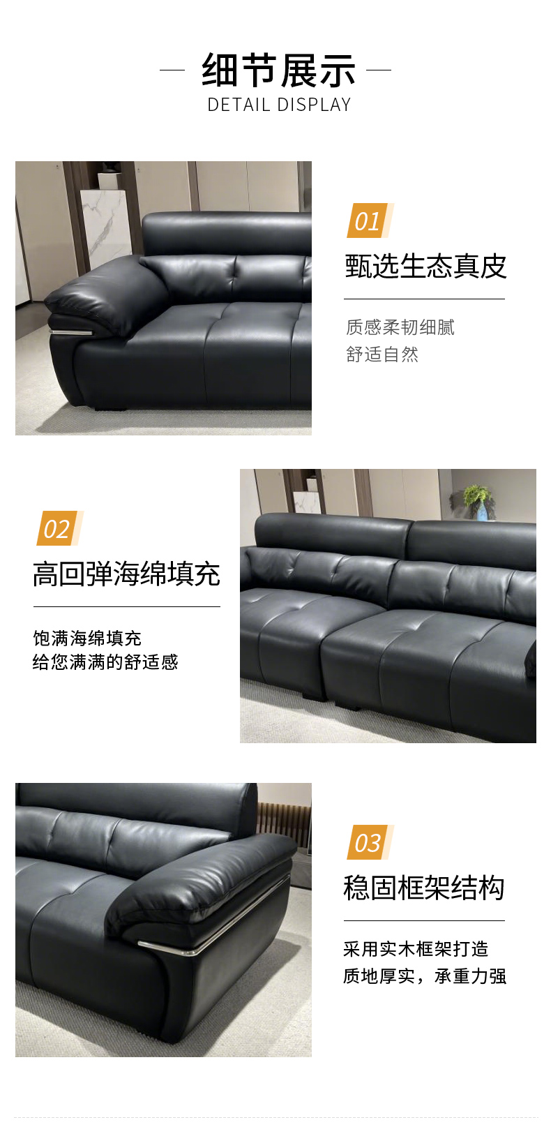 千匠一品 现代风格 生态真皮+高密度海绵+实木框架 时尚大气沙发9262-J