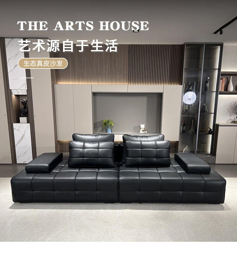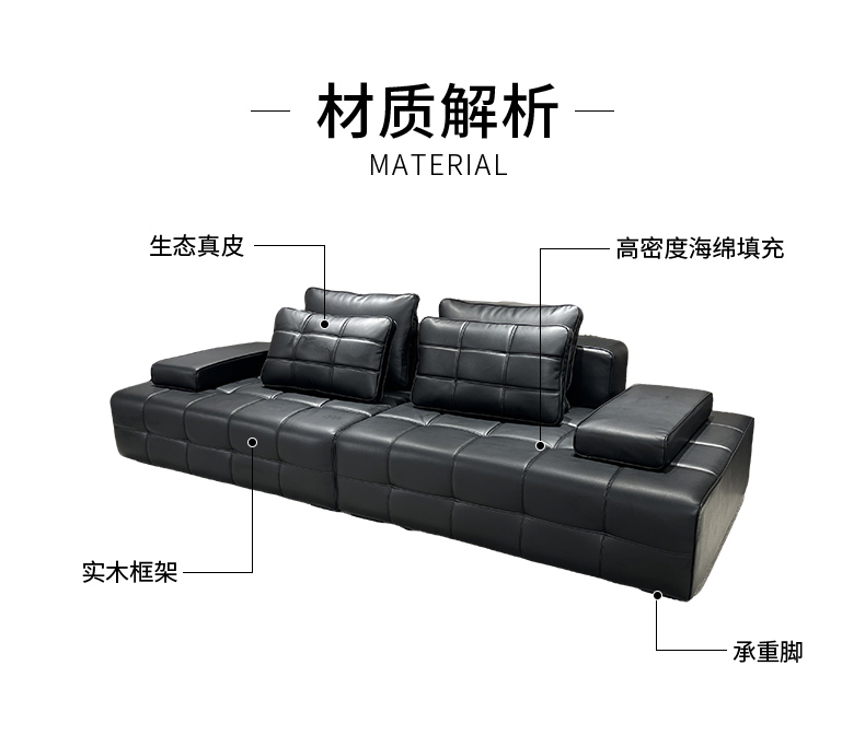 千匠一品 现代风格 生态真皮+高密度海绵+实木框架 时尚大气沙发9266-J