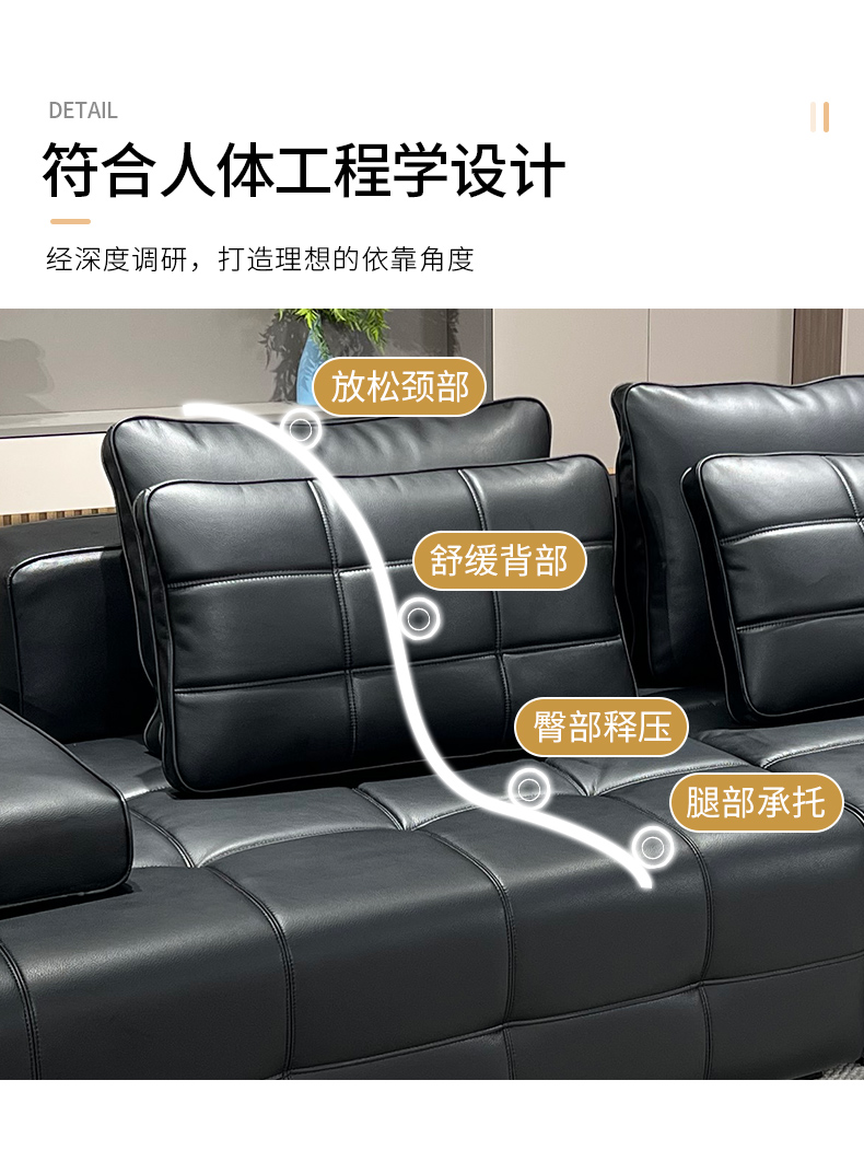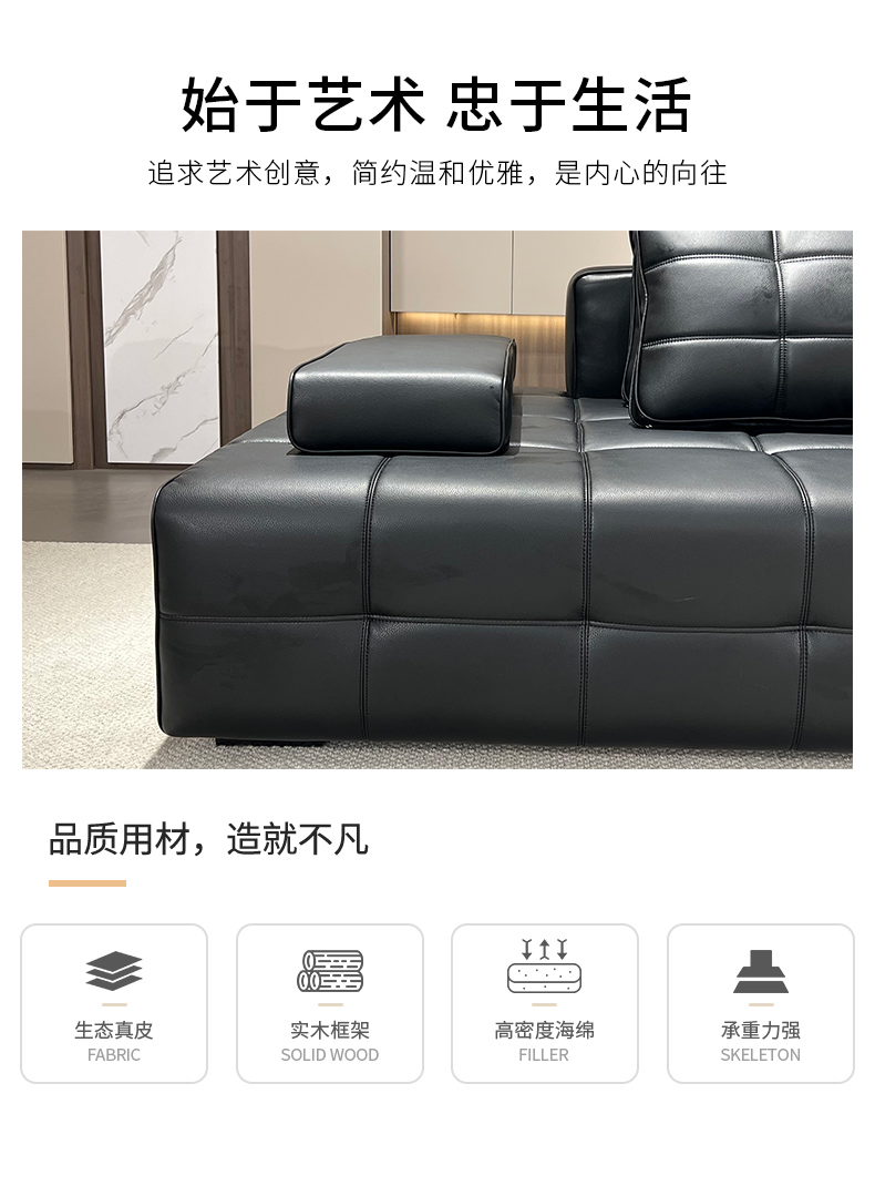 △千匠一品 现代风格 头层牛皮+高密度海绵+落叶松框架+蛇形弹簧+稳固铁架+品质电机 时尚大气沙发QT-C9332-J