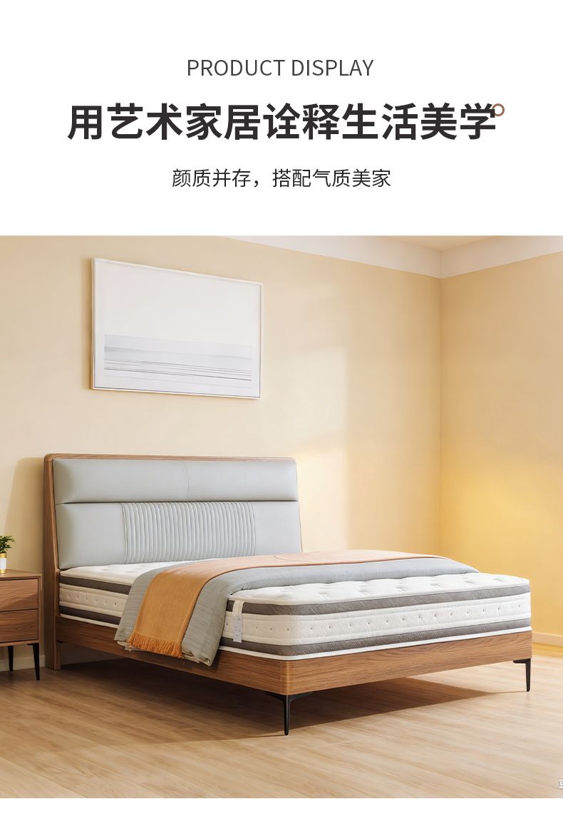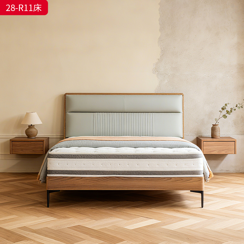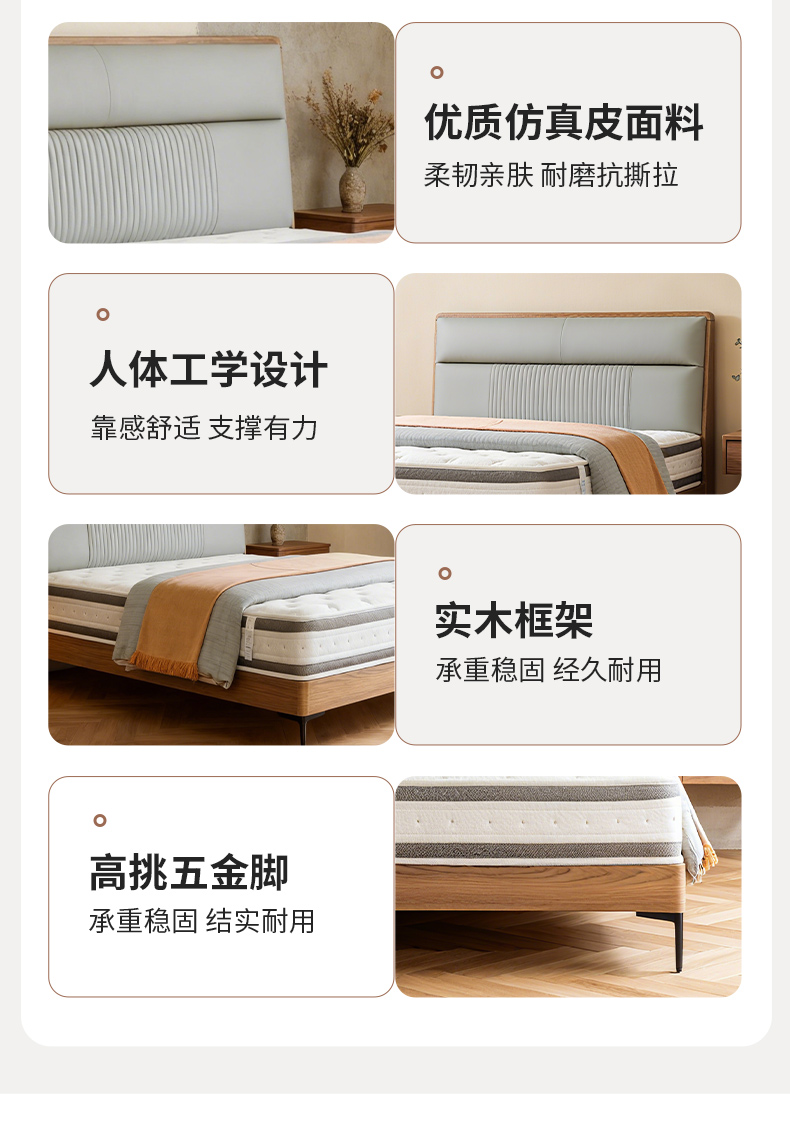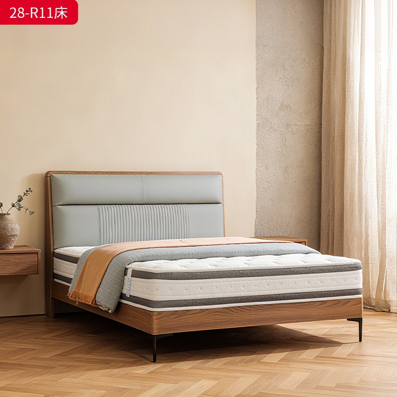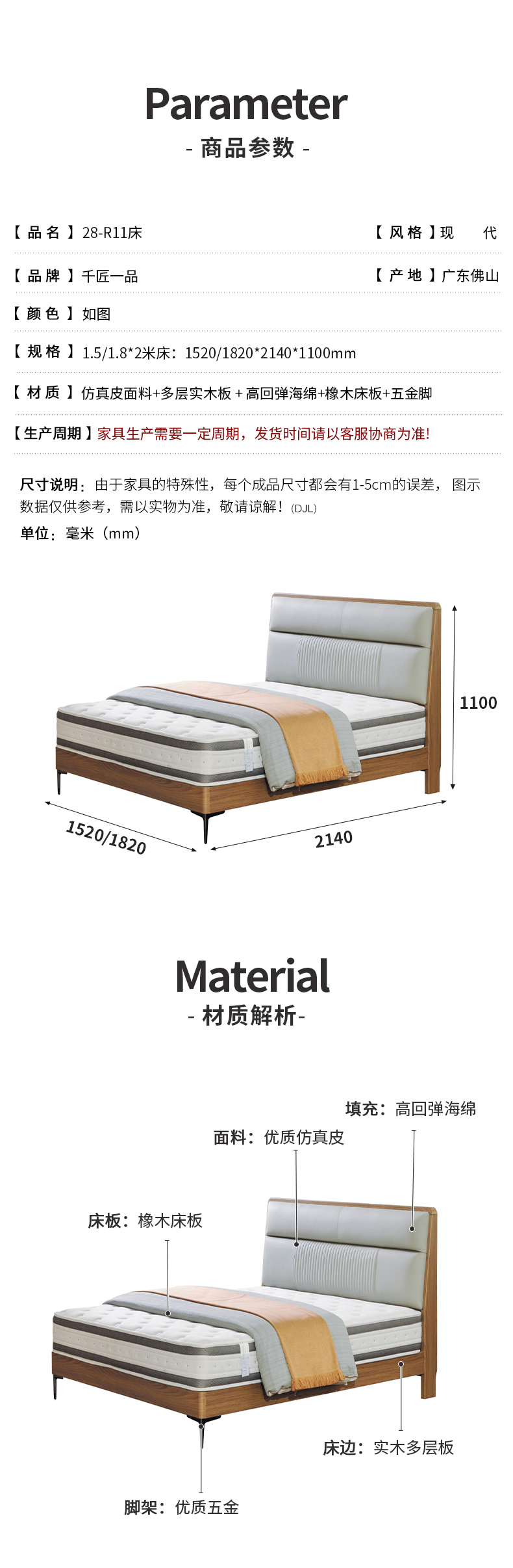 千匠一品 现代风格 仿真皮面料+多层实木板+高回弹海绵+橡木床板+五金脚 时尚简约床28-R11-L