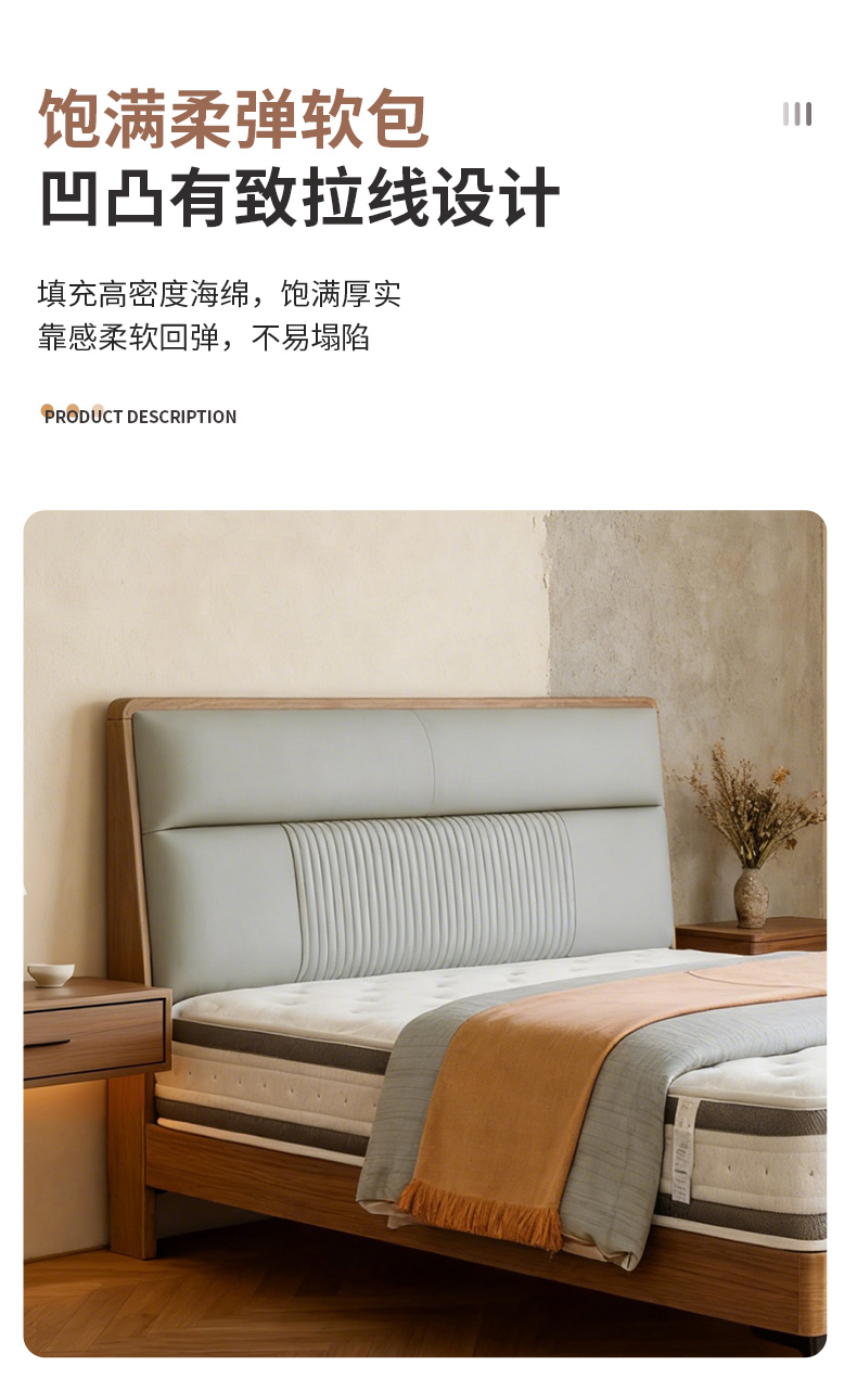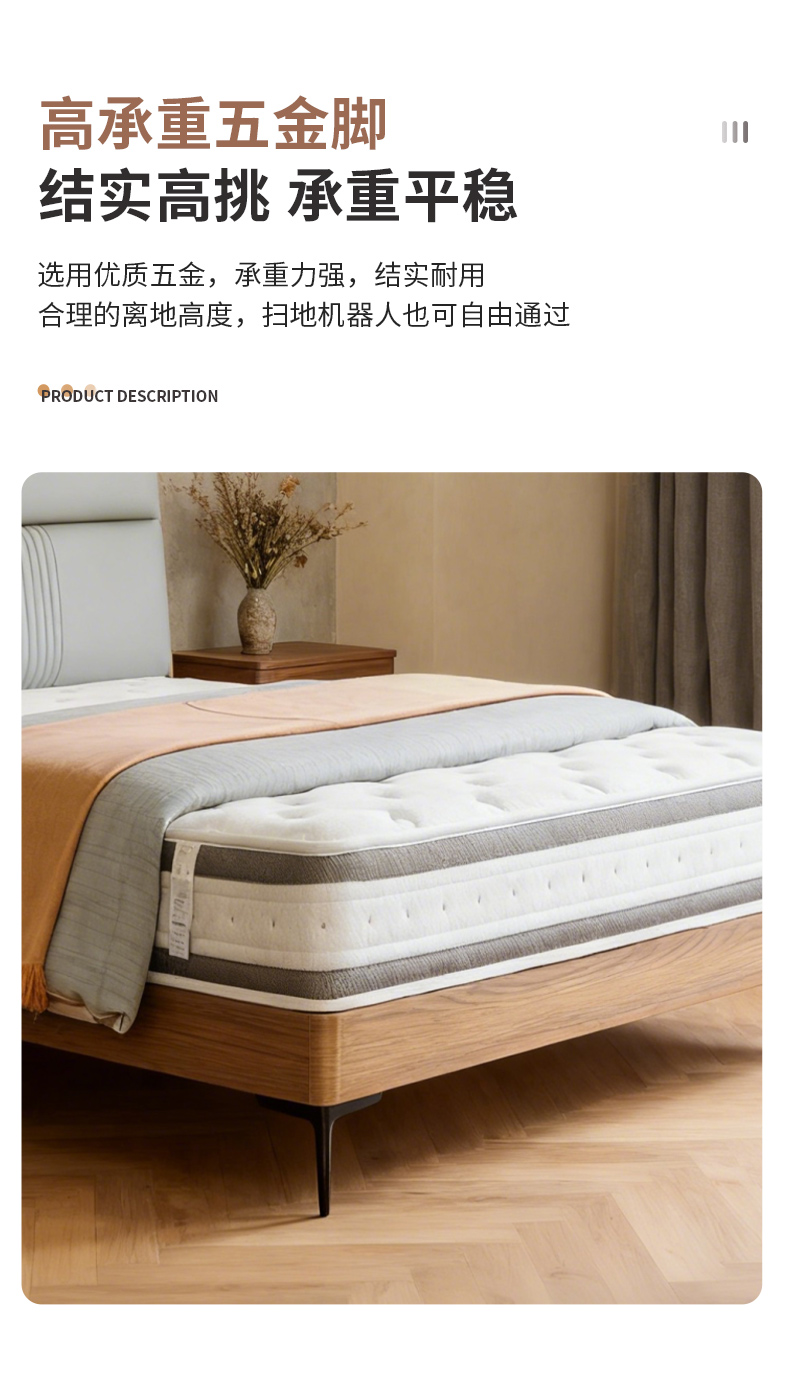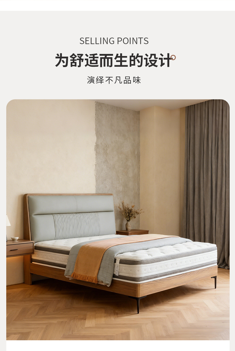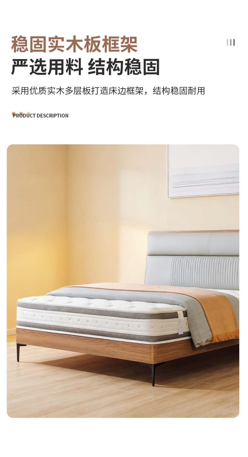 千匠一品 现代风格 仿真皮面料+多层实木板+高回弹海绵+橡木床板+五金脚 时尚简约床28-R11-L