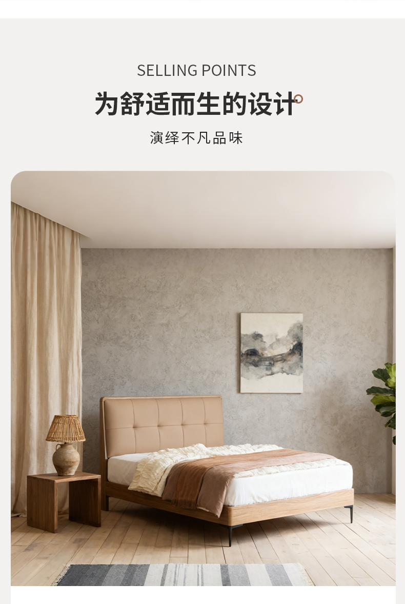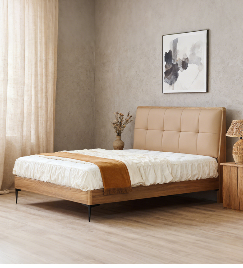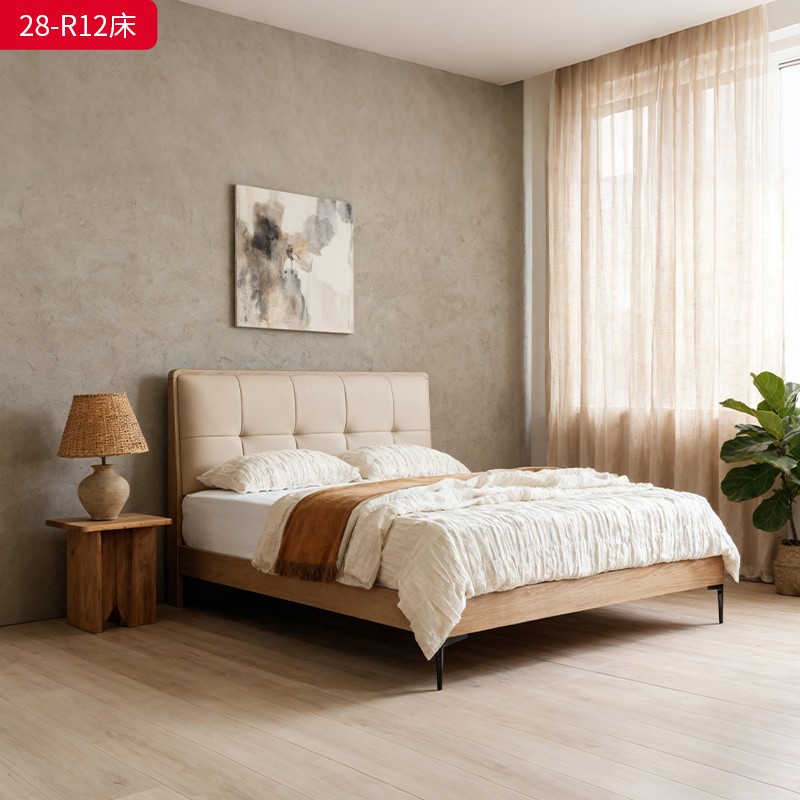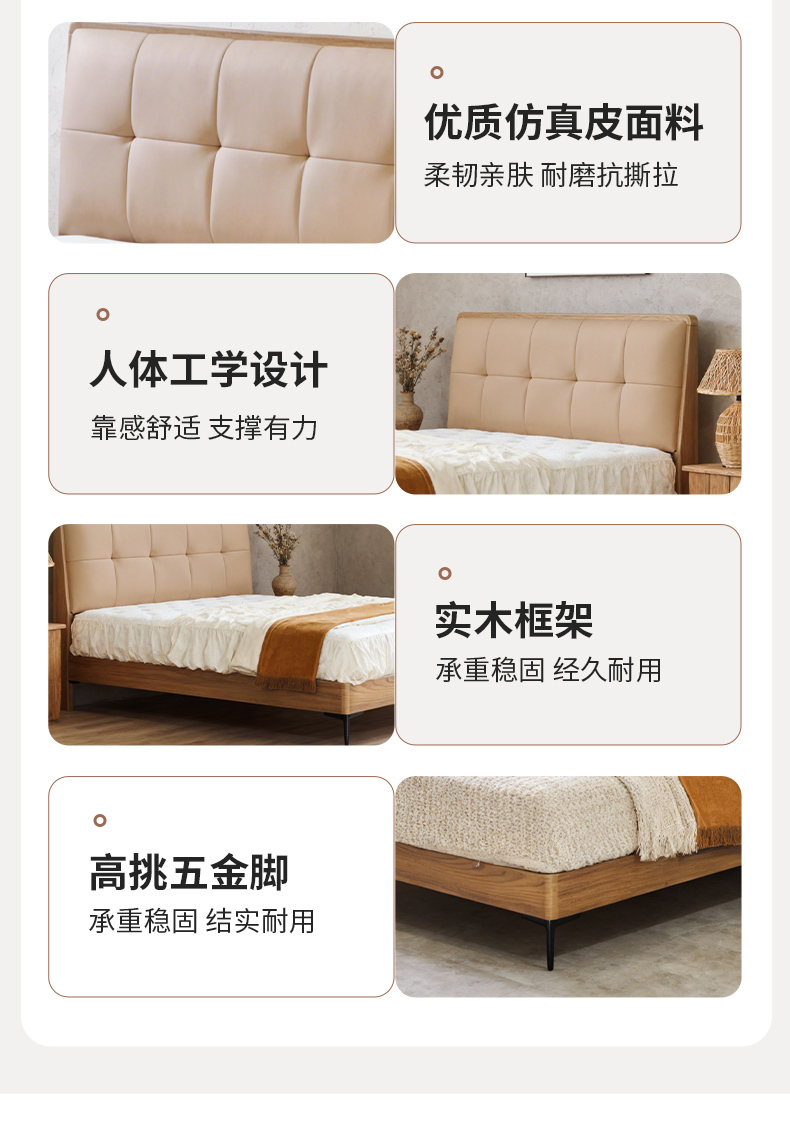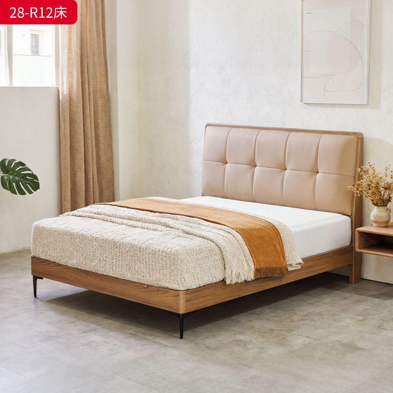 千匠一品 现代风格 仿真皮面料+多层实木板+高回弹海绵+橡木床板+五金脚 时尚简约床28-R12-L