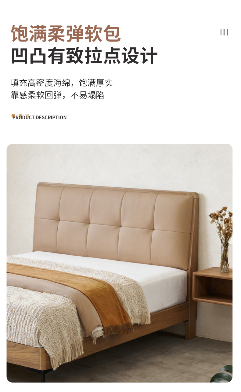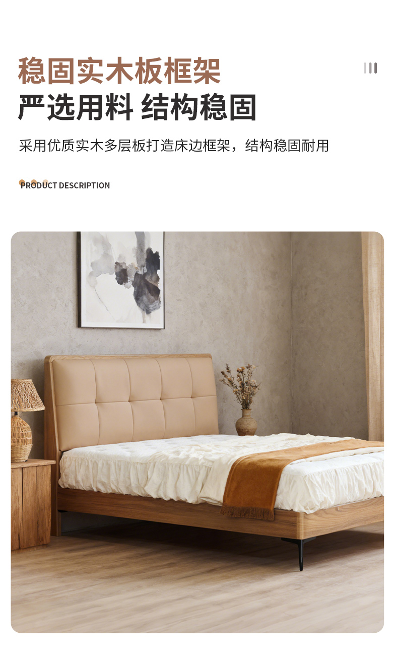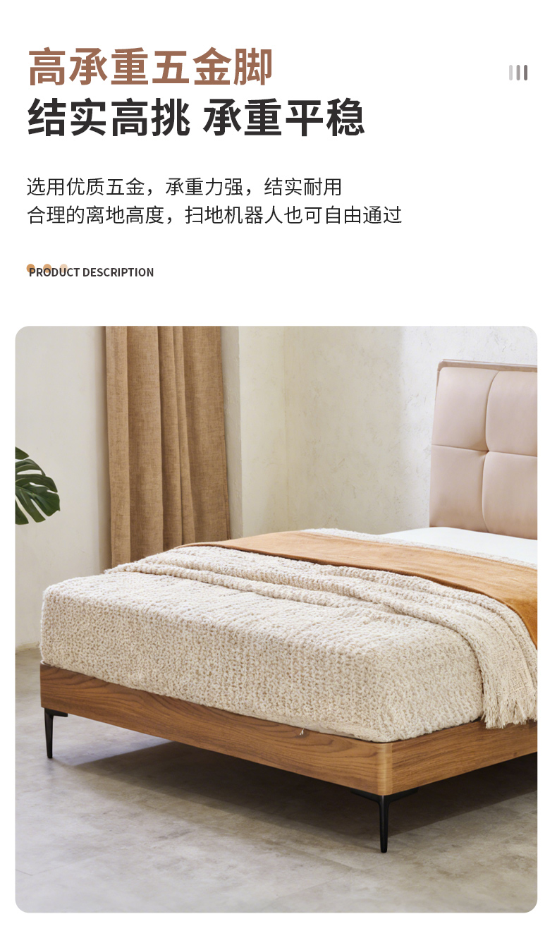 千匠一品 现代风格 仿真皮面料+多层实木板+高回弹海绵+橡木床板+五金脚 时尚简约床28-R12-L