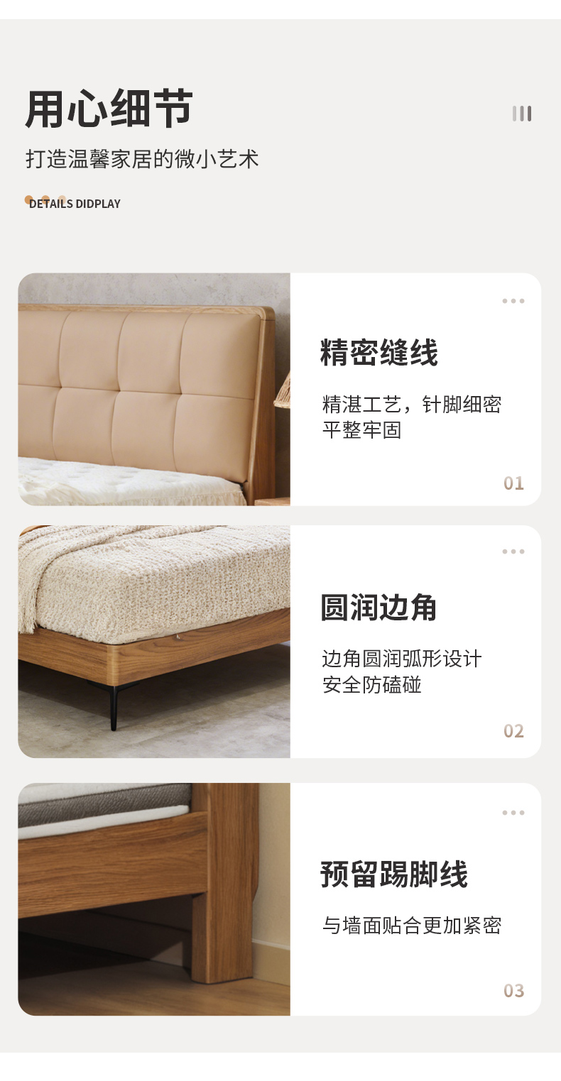 千匠一品现代极简优质头层真皮+实木框架+高回弹海绵双人床-NS19床头柜NS02-G