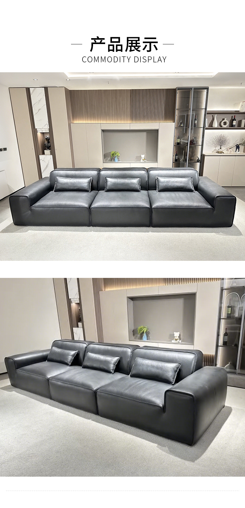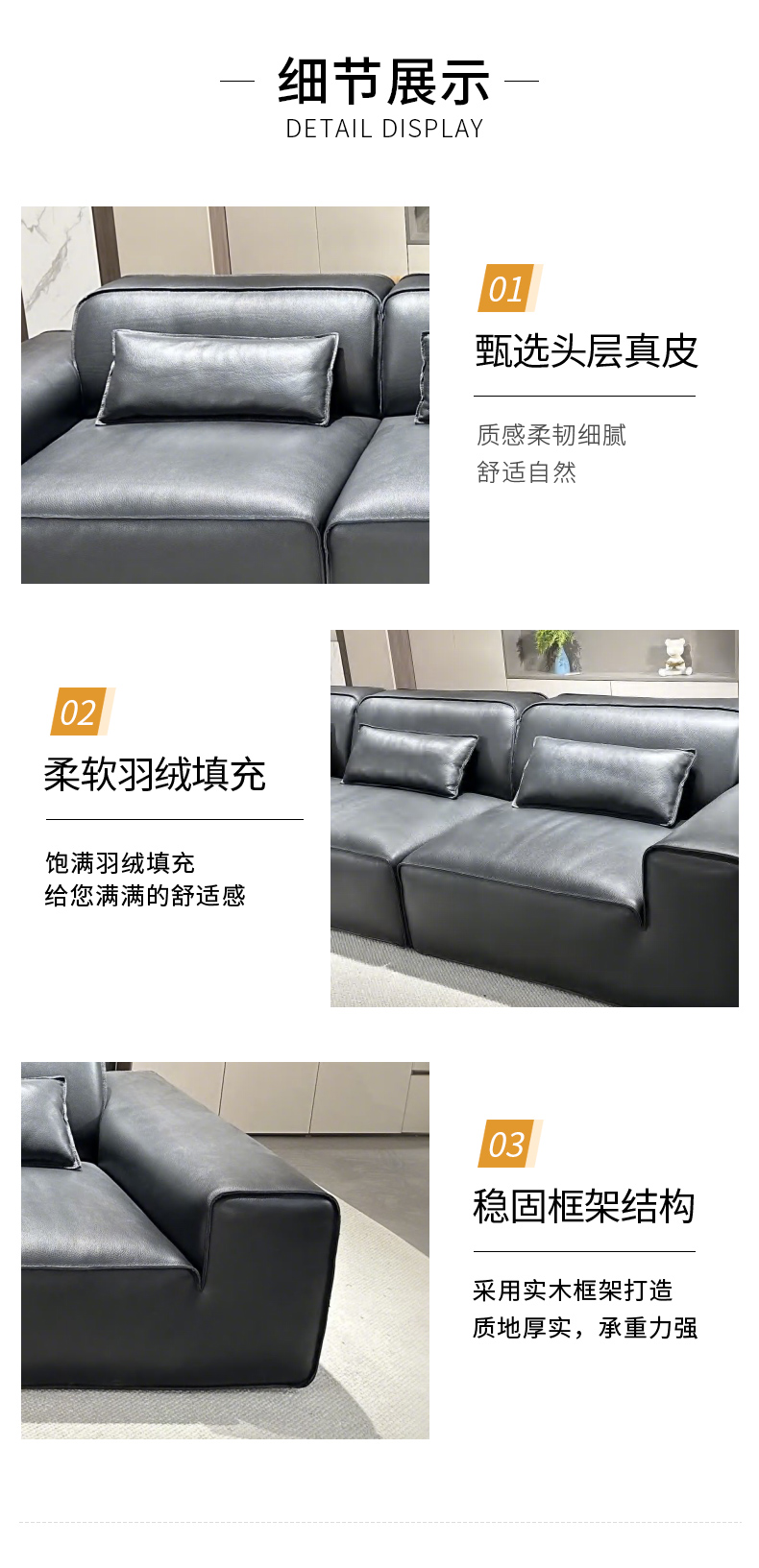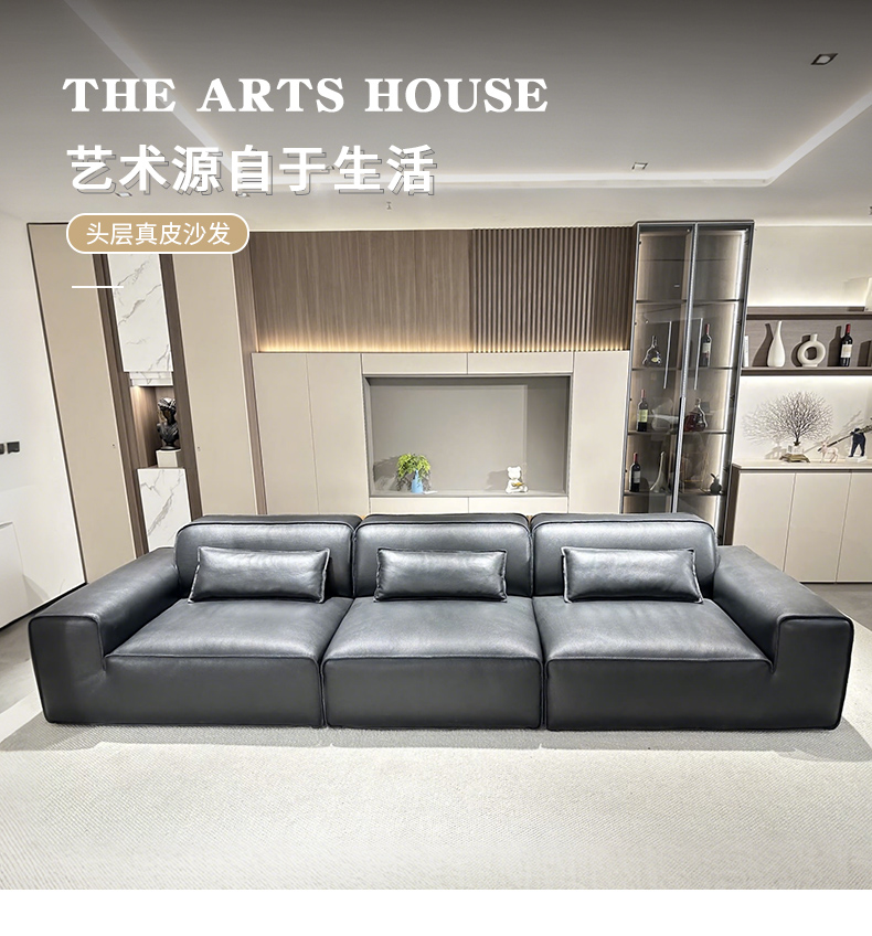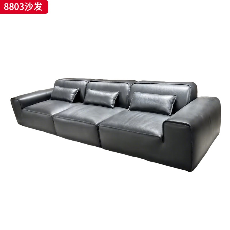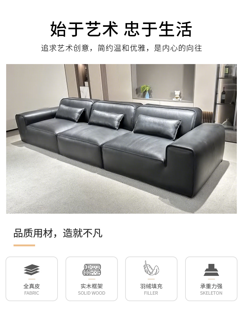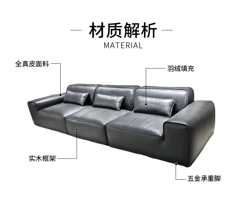 千匠一品 现代风格 全真皮+羽绒填充+实木框架+承重脚 时尚简约大黑牛沙发8803-L