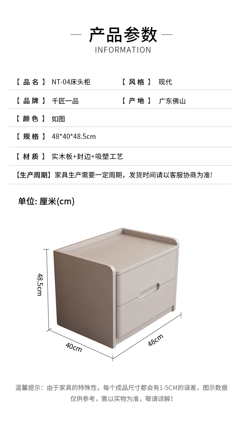 商品名称:千匠一品 现代风格 实木板+封边+吸塑工艺 时尚简约床头柜NT-04-L