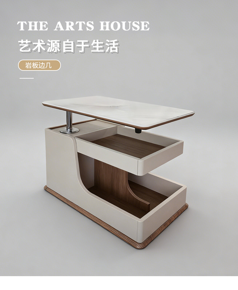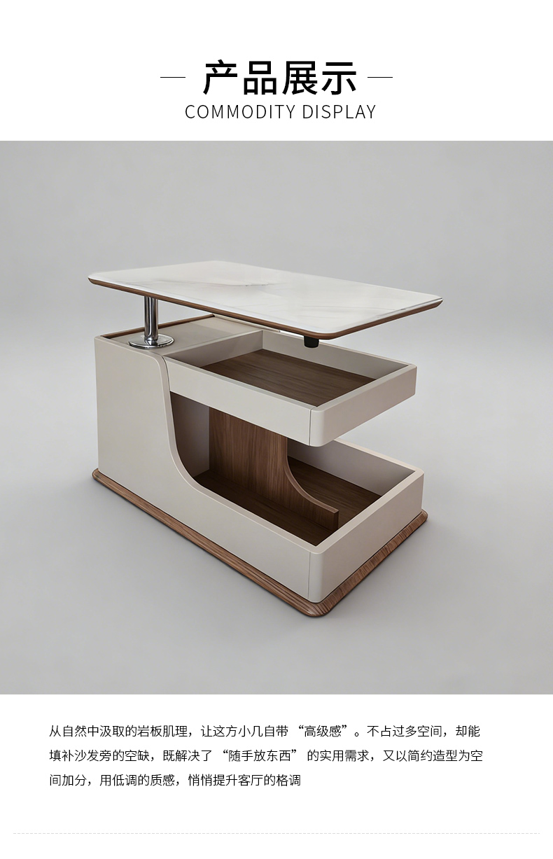 千匠一品 现代风格 岩板+实木板+环保密度板 时尚简约沙发边几28-F01-L
