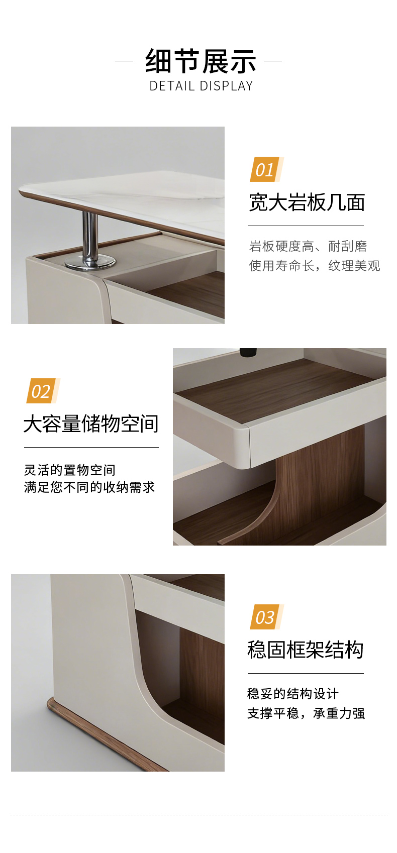 茶几款式很好看做工精致时尚岩板厚实 柜体挺不错,很好看和整个家的风格很搭真的好喜欢,发货包装都挺好,高端大气上档次!