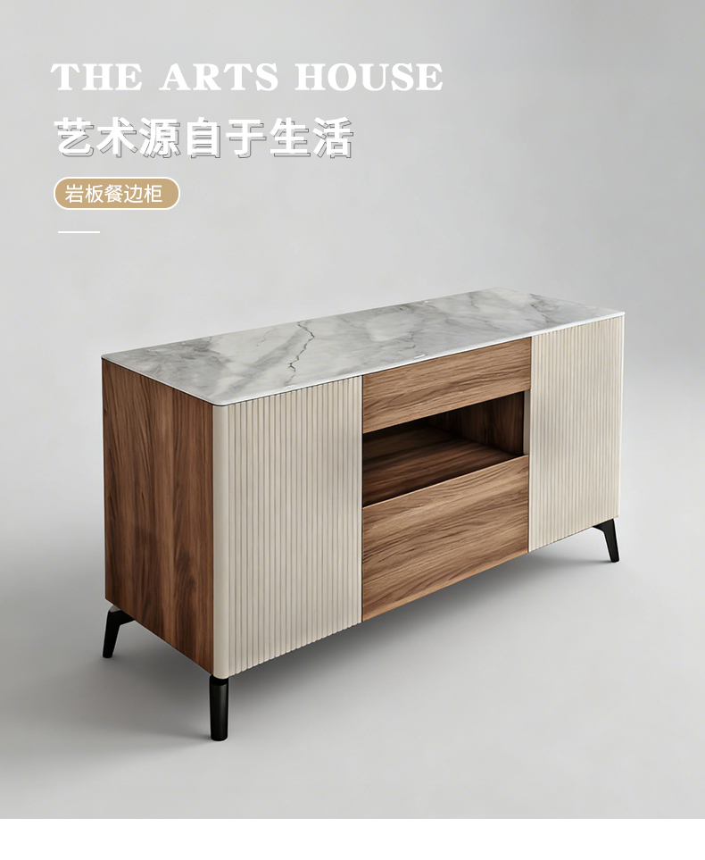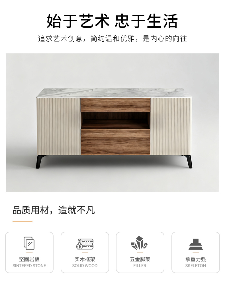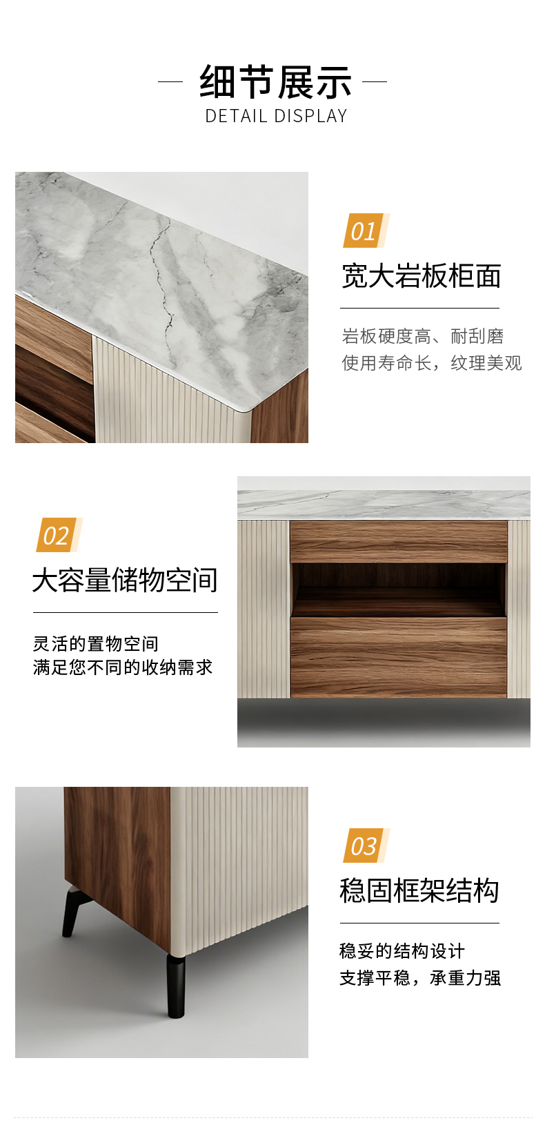 千匠一品 现代风格 岩板+实木板+环保密度板+五金脚 时尚简约餐边柜28-F120-L