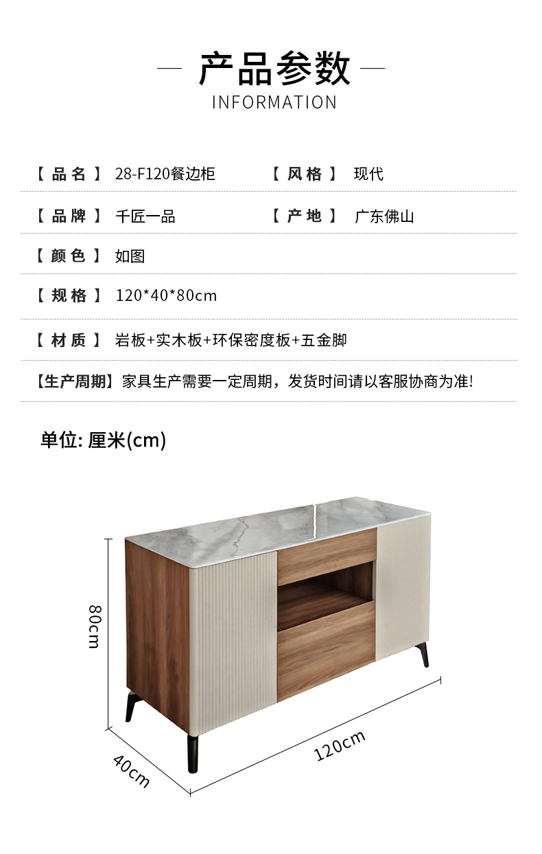 商品名称:千匠一品 现代风格 岩板+实木板+环保密度板+五金脚 时尚简约餐边柜28-F120-L