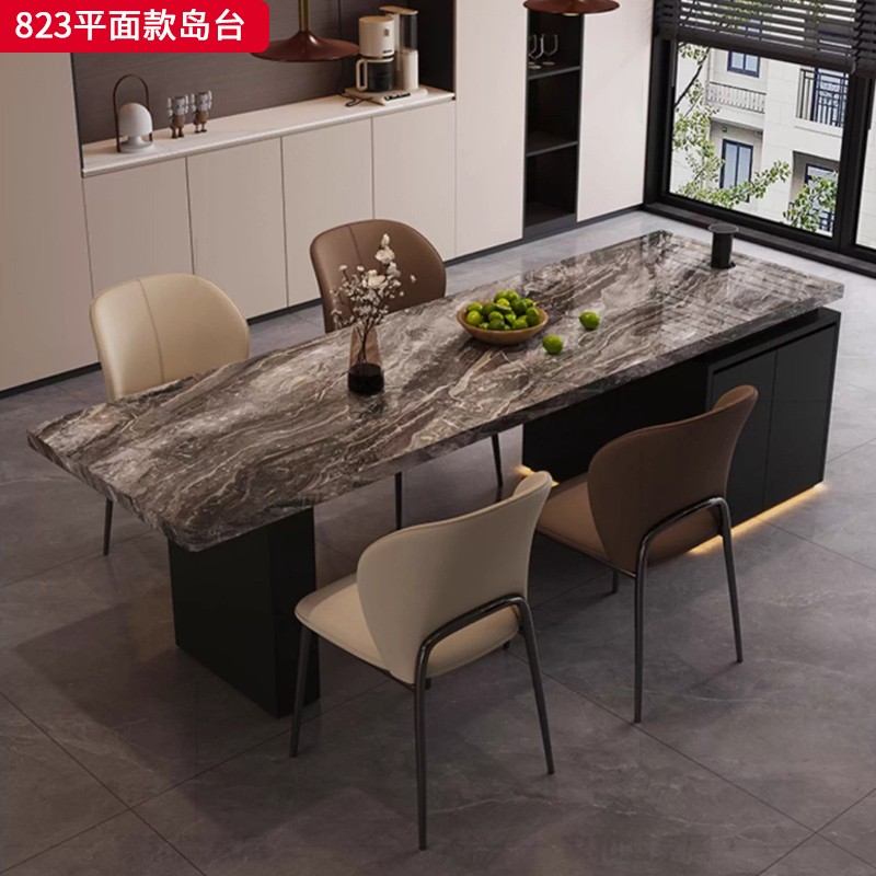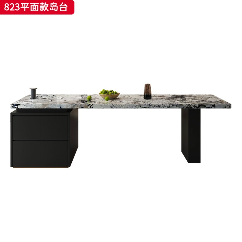 千匠一品 现代风格 全实木夹板+烤漆+岩板+公牛升降插座 时尚大气平面款岛台823-J
