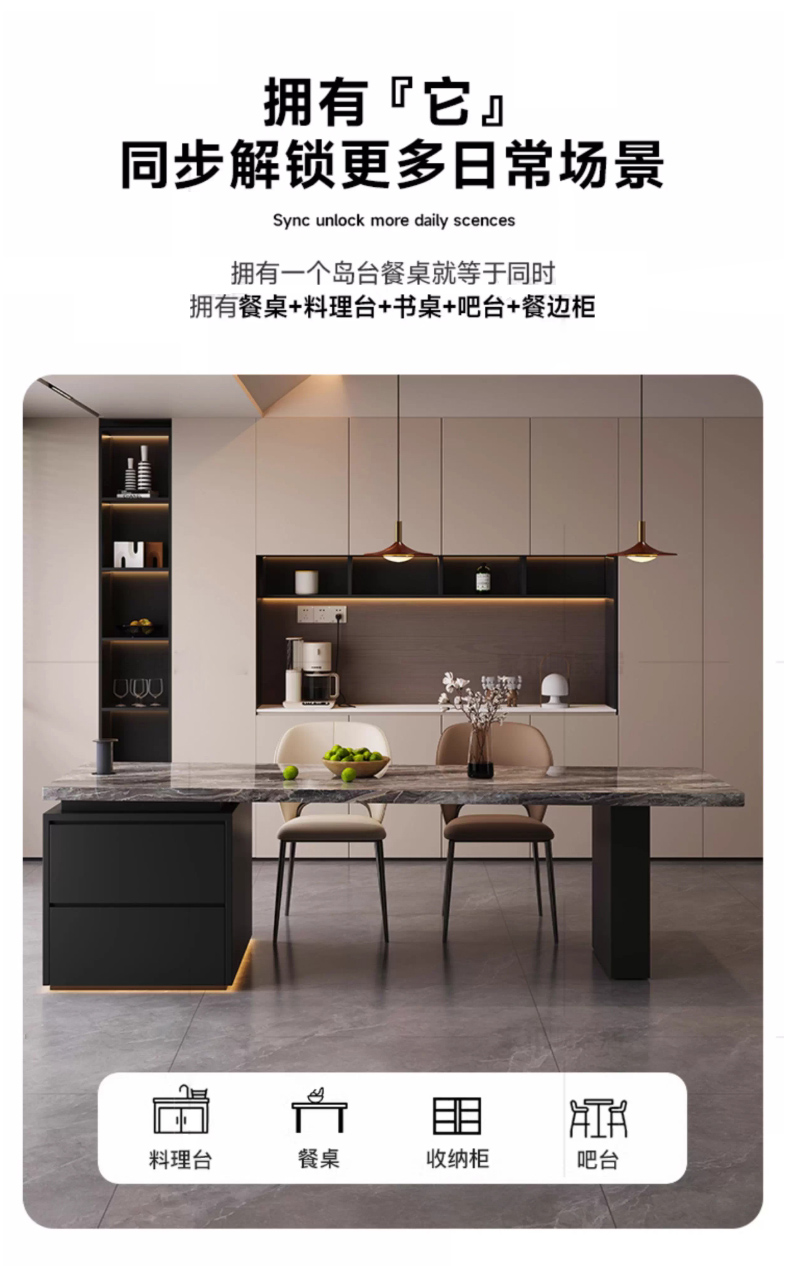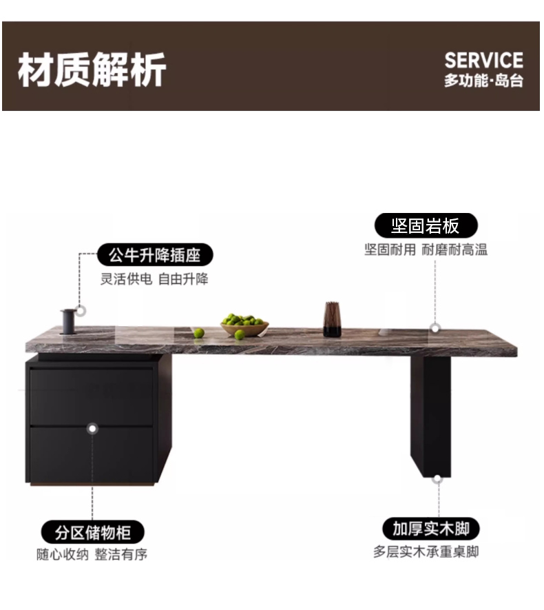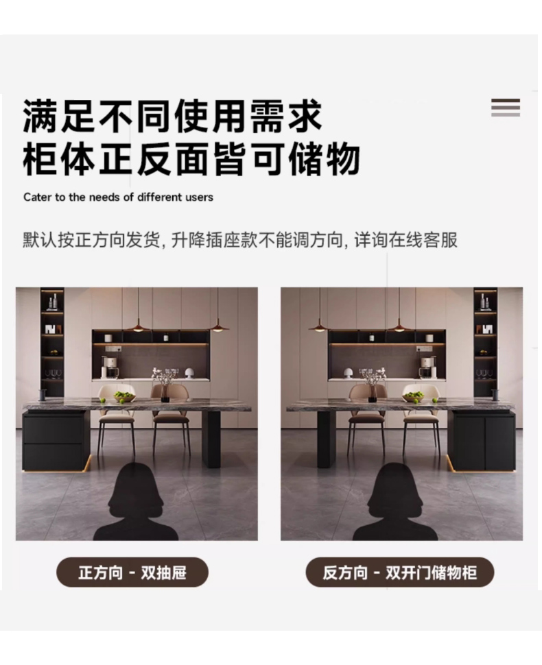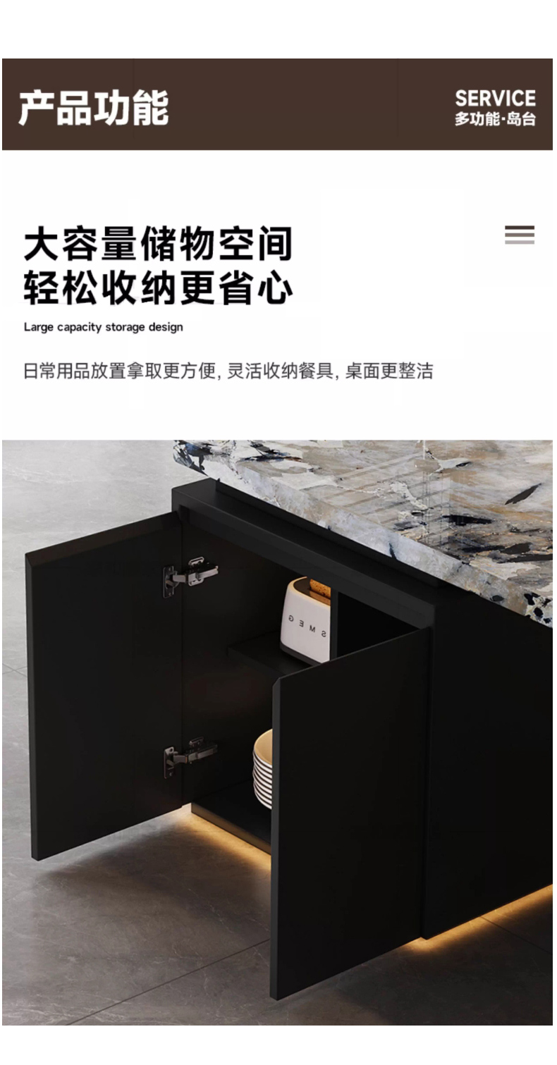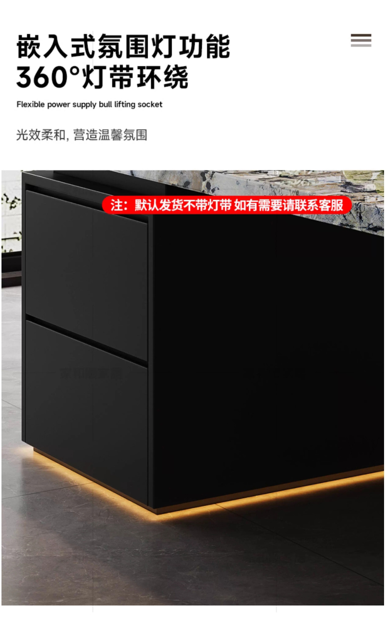 商品名称:千匠一品 现代风格 全实木夹板+烤漆+岩板+公牛升降插座 时尚大气平面款岛台823-J