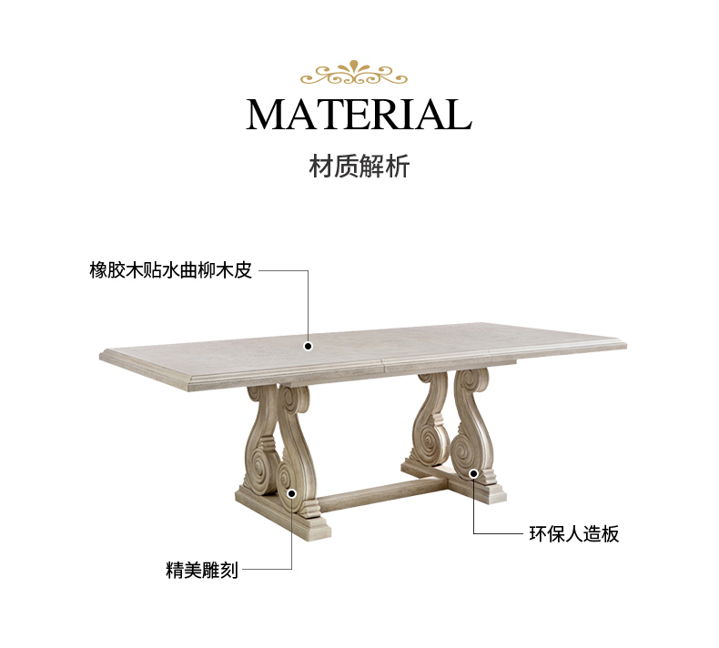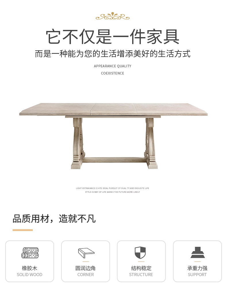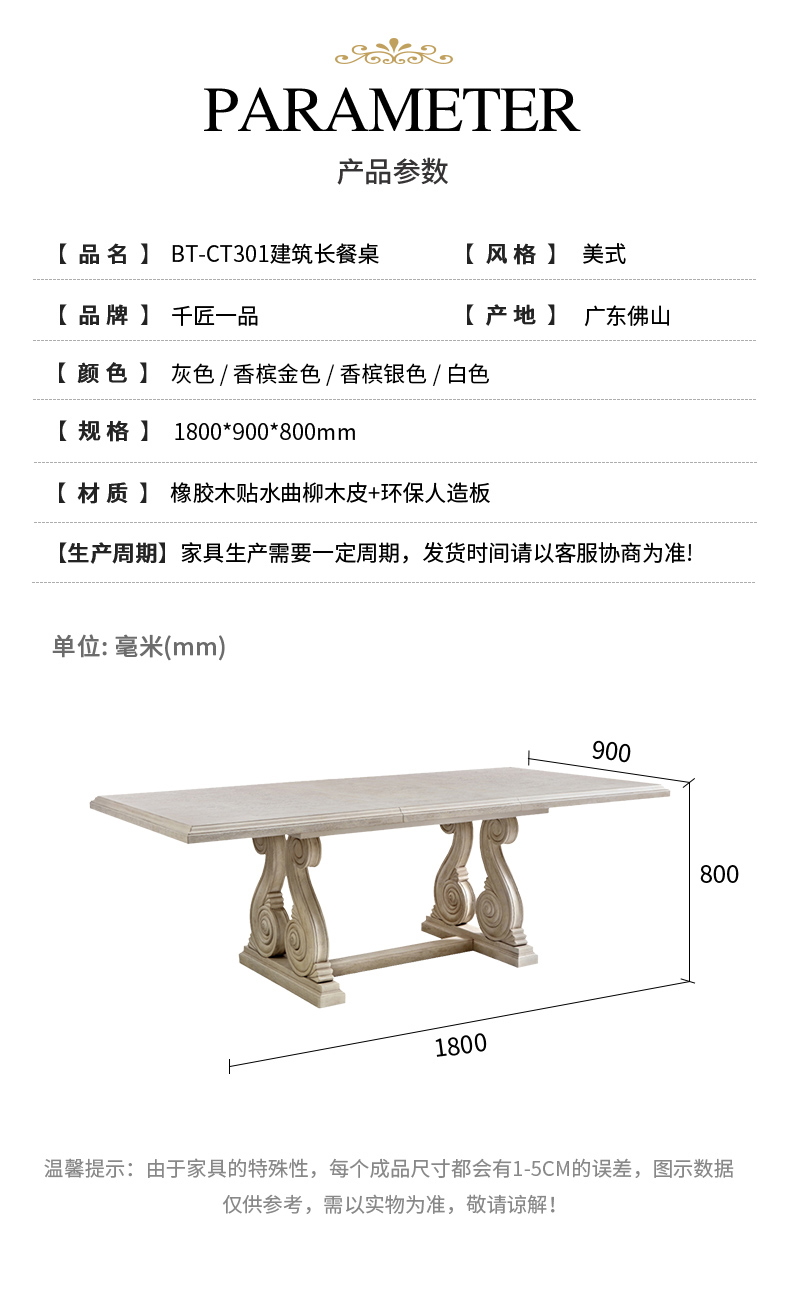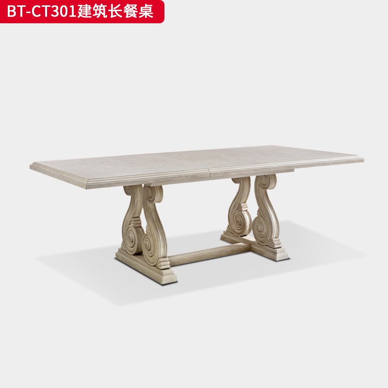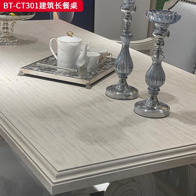 商品名称:【精品】千匠一品 美式风格 橡胶木贴水曲柳木皮+环保人造板 时尚大气建筑长餐桌BT-CT301-J