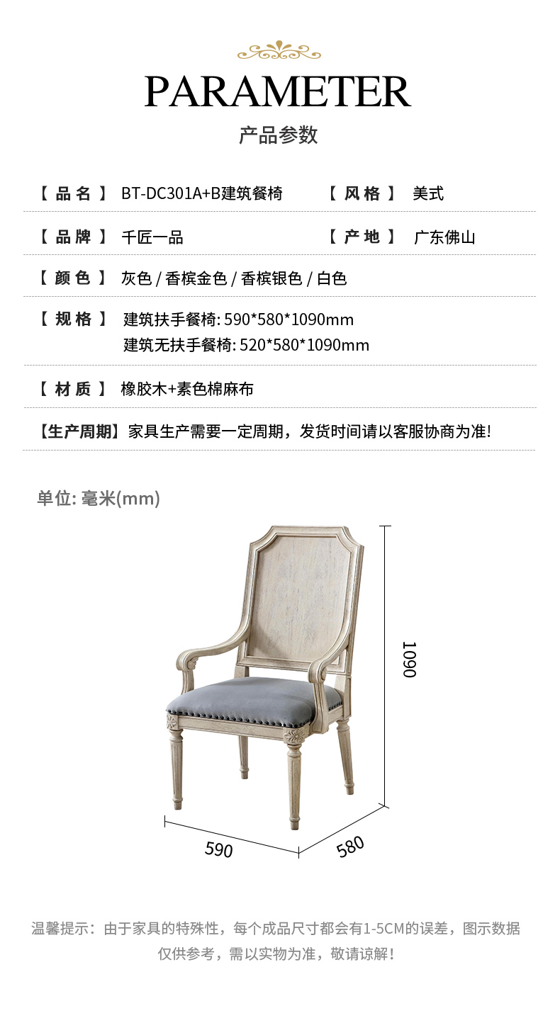 商品名称:【精品】千匠一品 美式风格 香蕉木+素色棉麻布 时尚大气建筑餐椅BT-DC301A BT-DC301B-J