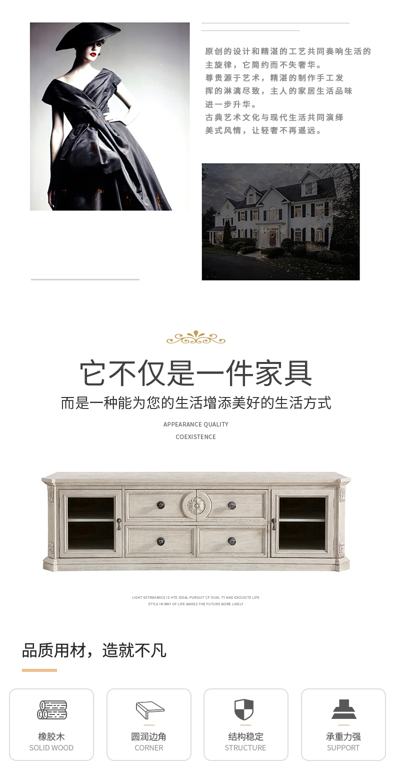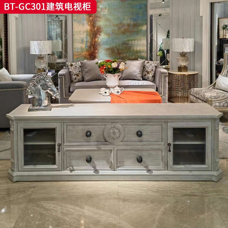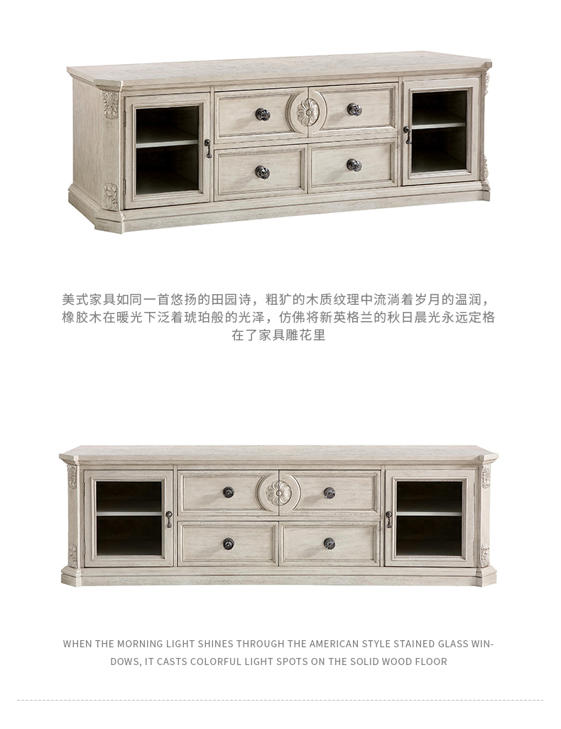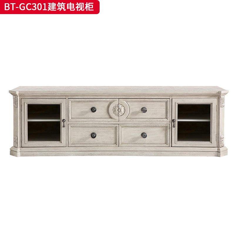 商品名称:【精品】千匠一品 美式风格 橡胶木贴水曲柳木皮+环保人造板+玻璃柜门 时尚大气建筑电视柜BT-GC301-J