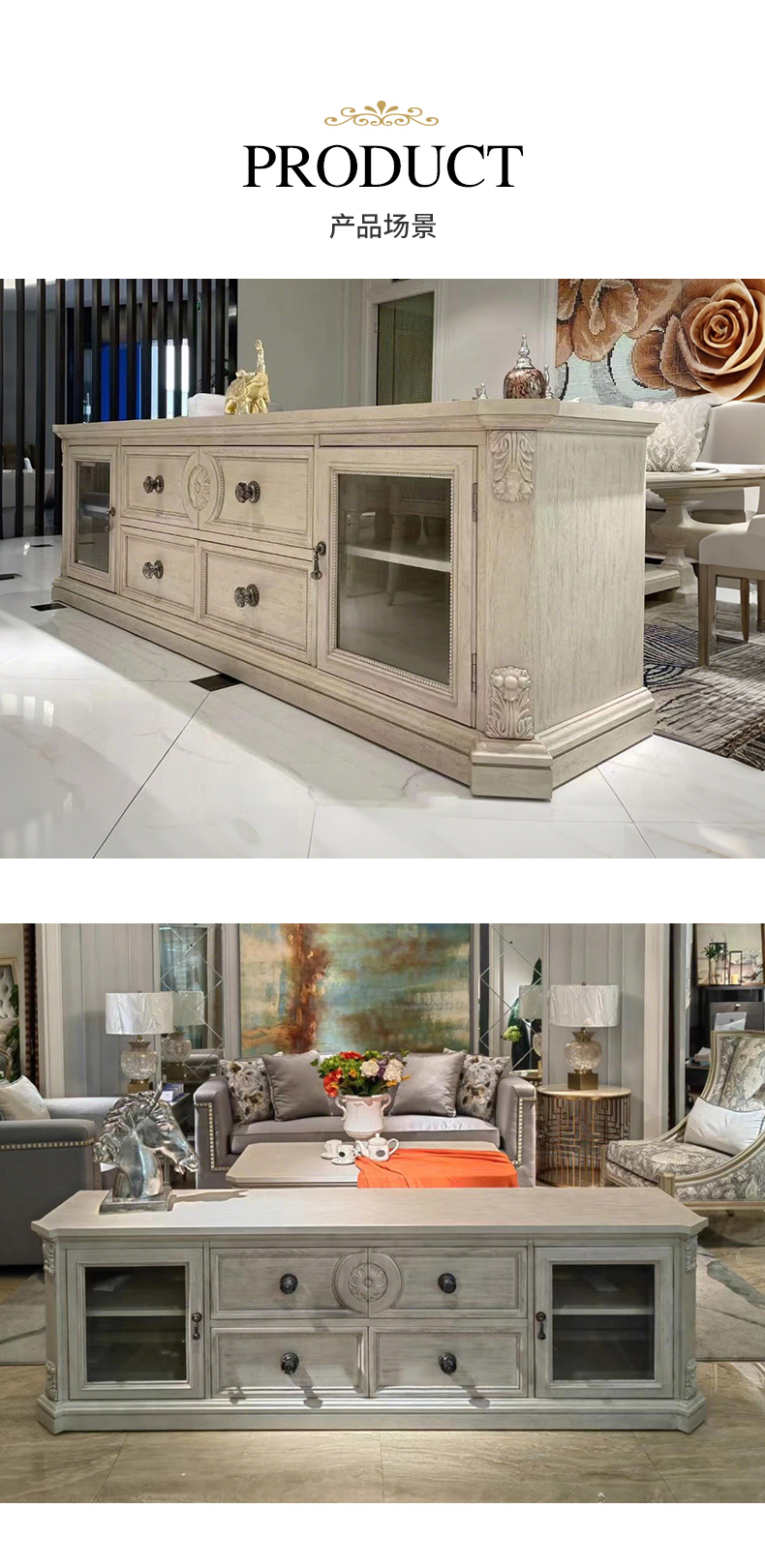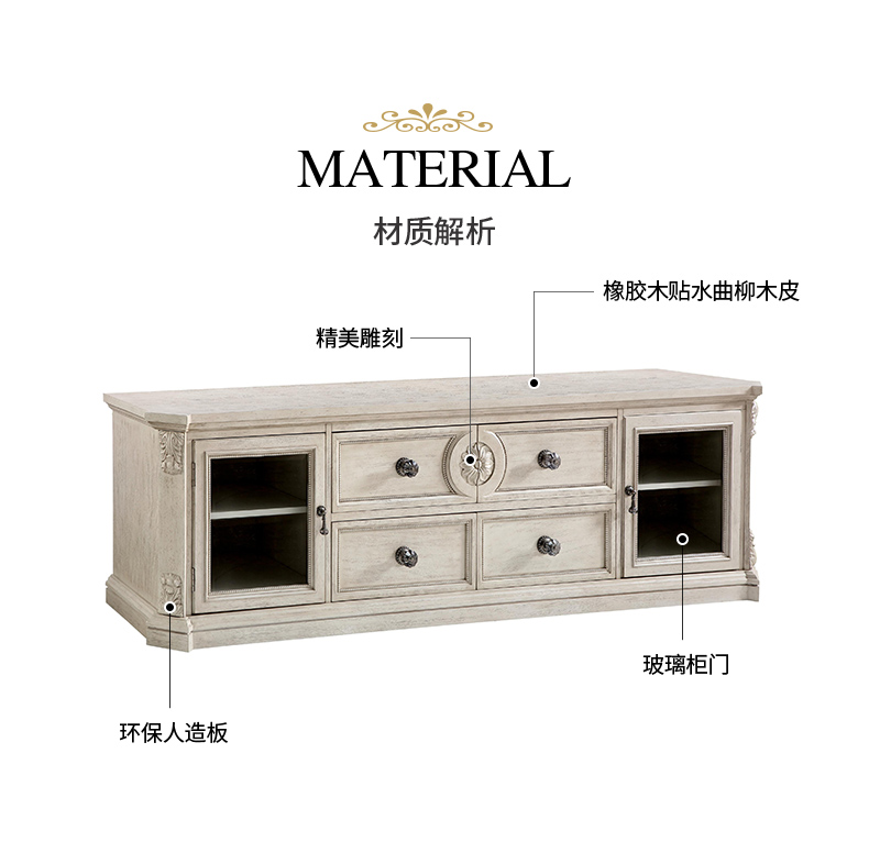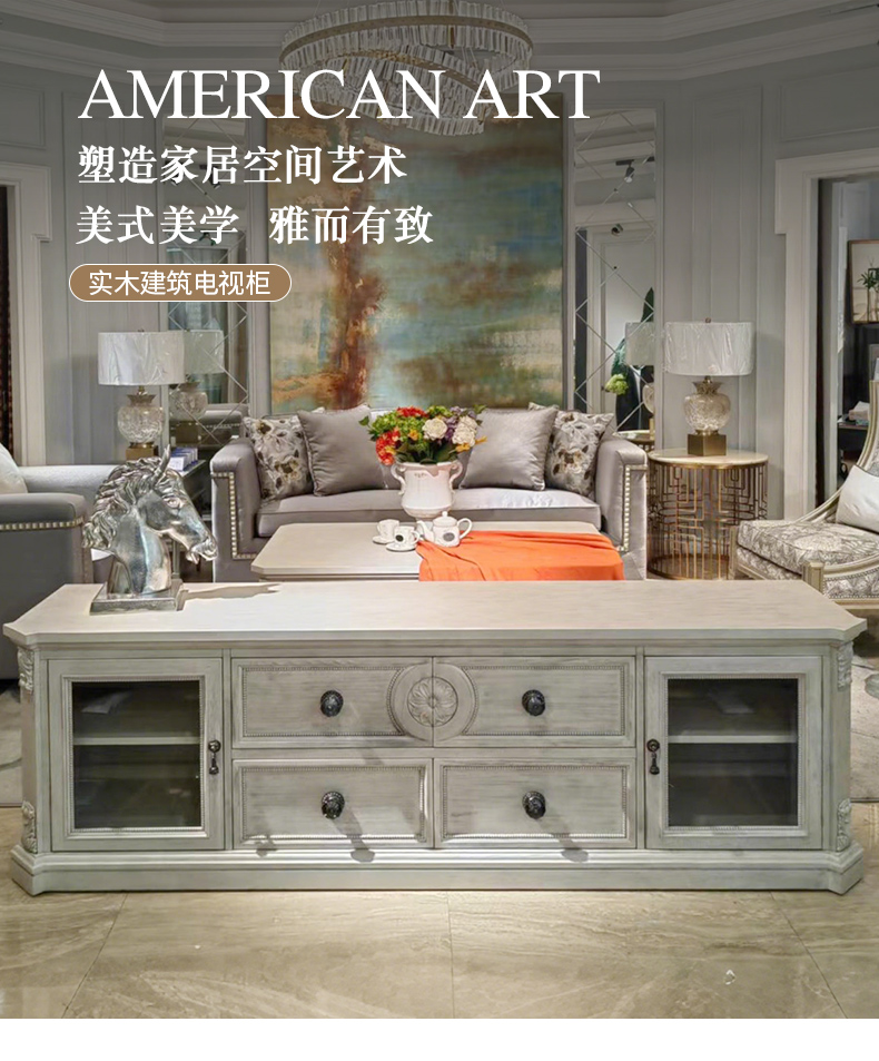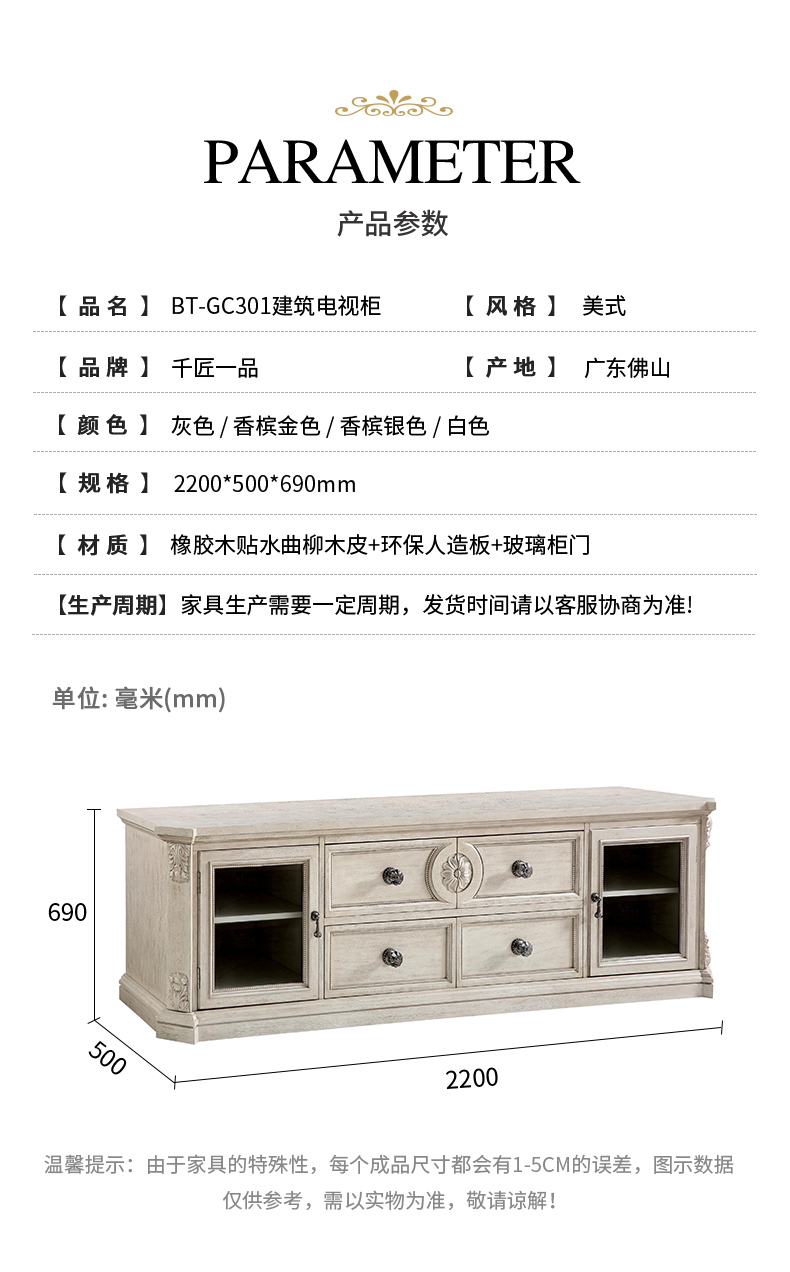 商品名称:【精品】千匠一品 美式风格 橡胶木贴水曲柳木皮+环保人造板+玻璃柜门 时尚大气建筑电视柜BT-GC301-J