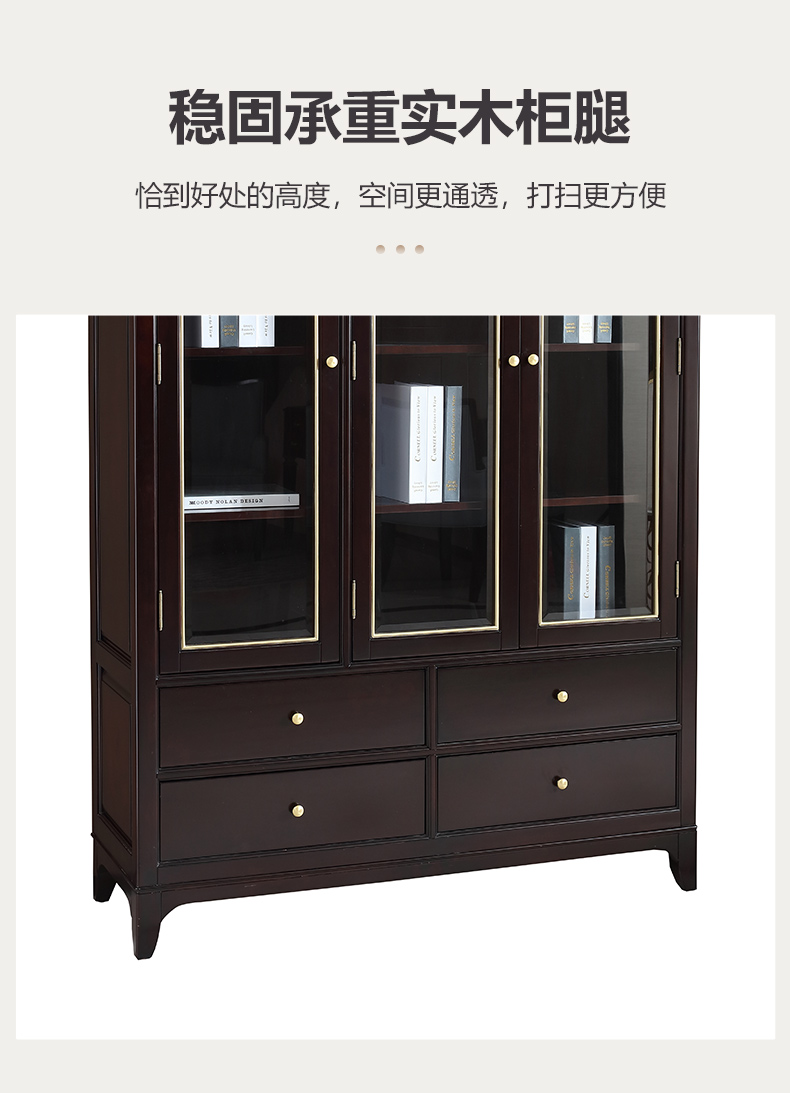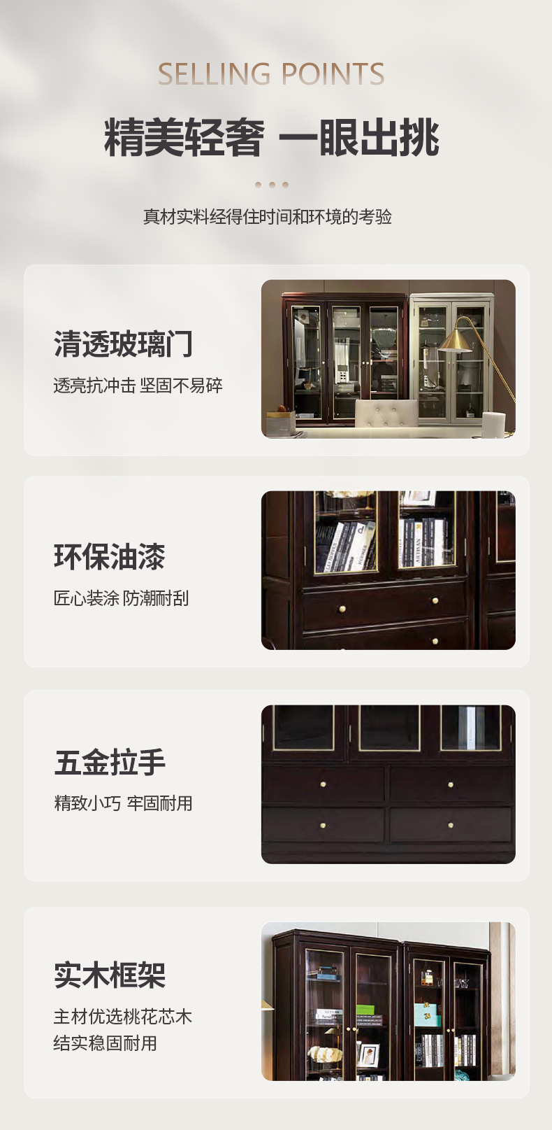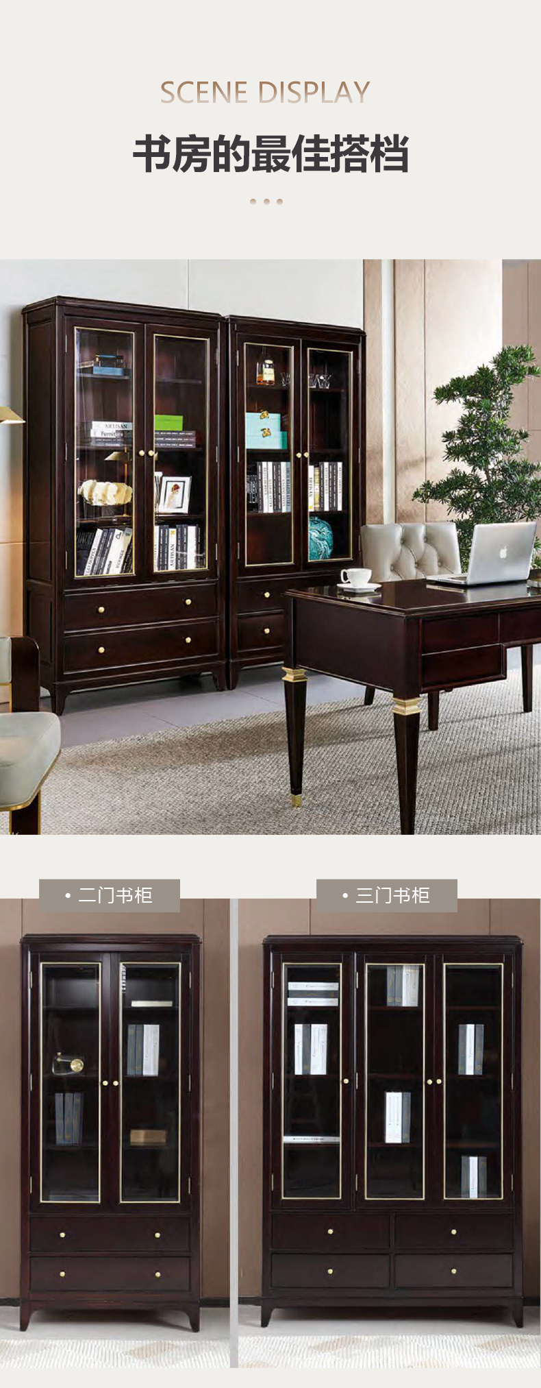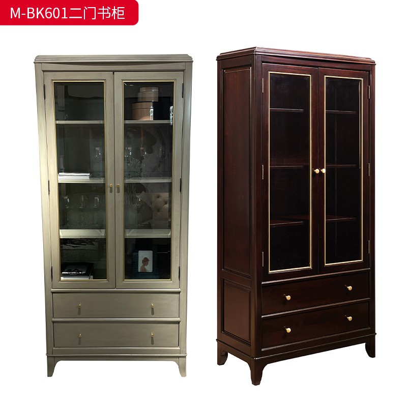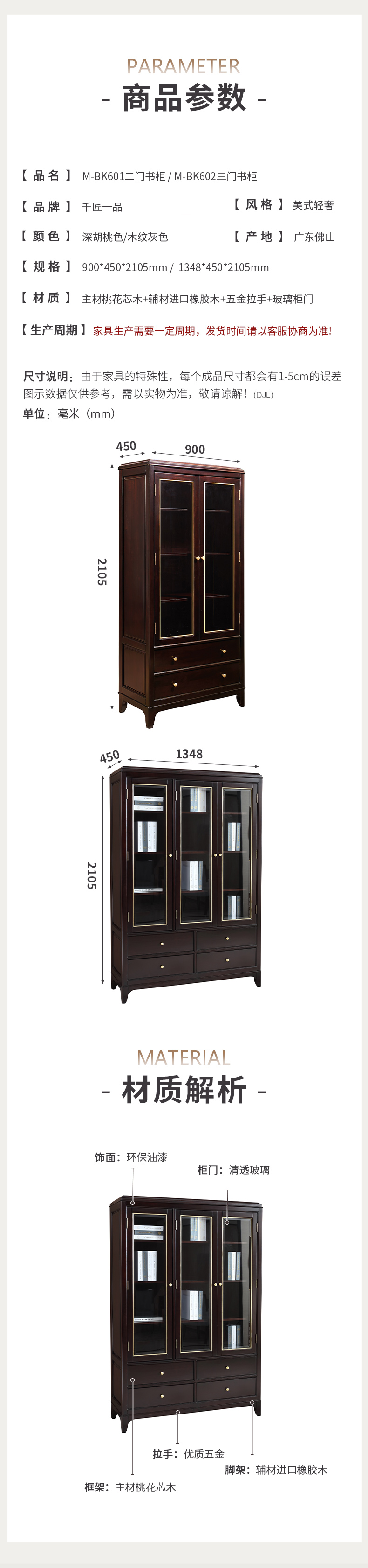 商品名称:【精品】千匠一品 美式轻奢风格 主材桃花芯木+辅材进口橡胶木+五金拉手+玻璃柜门 时尚大气二门书柜M-BK601 三门书柜M-BK602-J