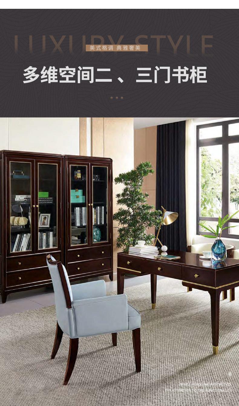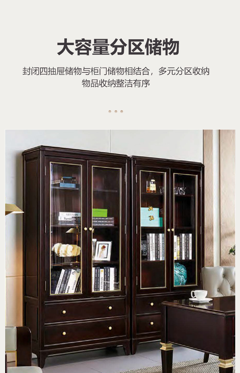 【精品】千匠一品 美式轻奢风格 主材桃花芯木+辅材进口橡胶木+五金拉手+玻璃柜门 时尚大气二门书柜M-BK601 三门书柜M-BK602-J