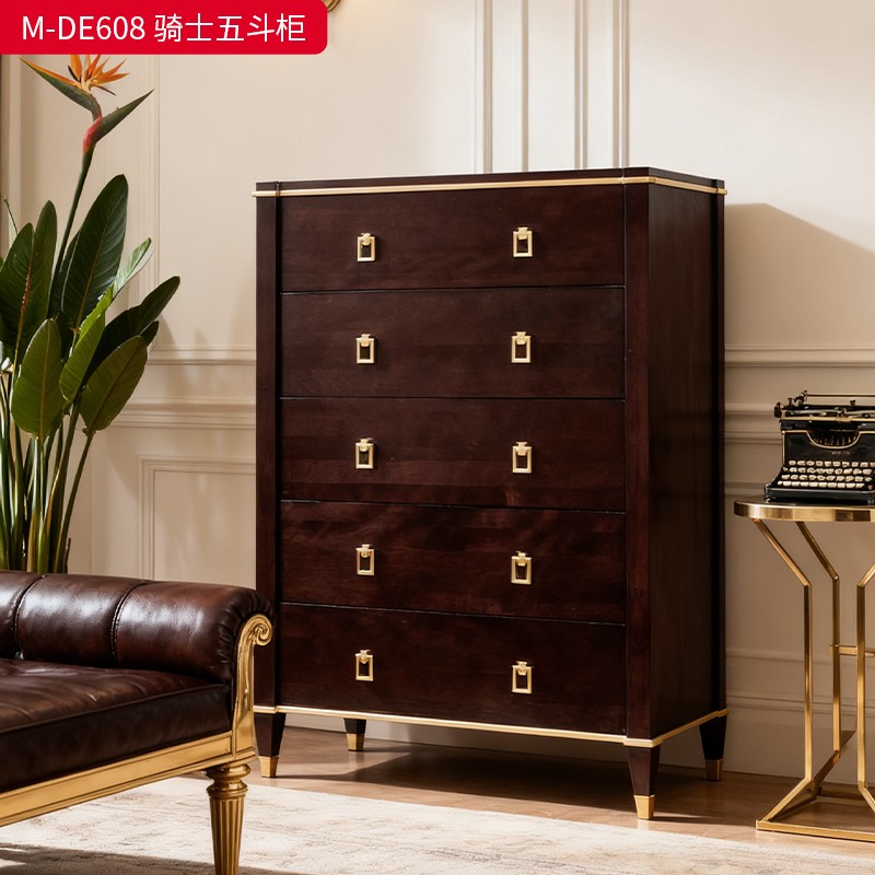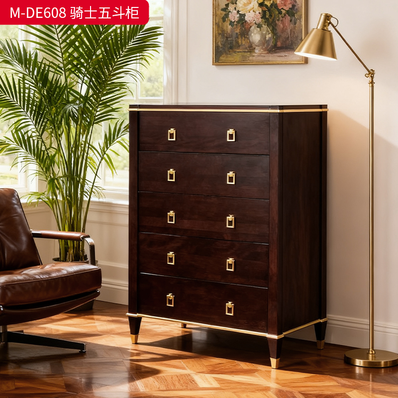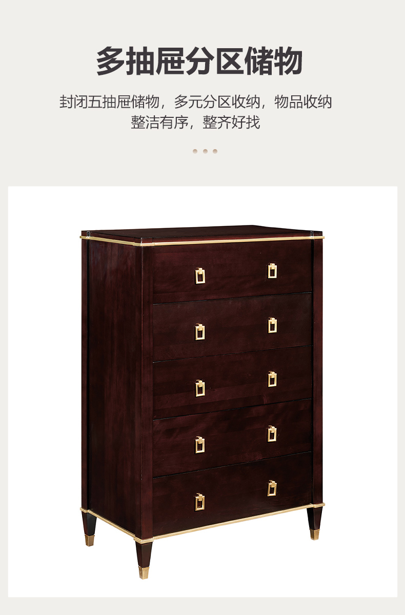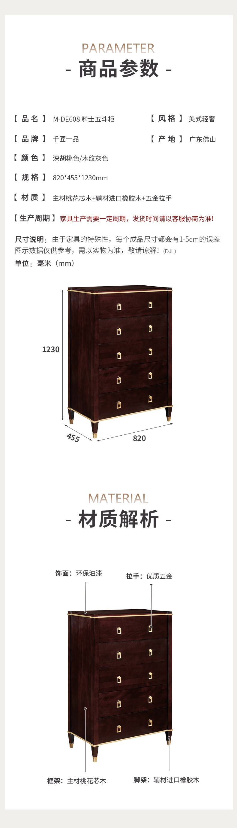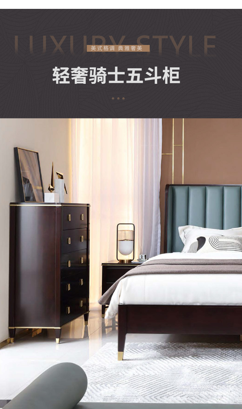 商品名称:【精品】千匠一品 美式轻奢风格 主材桃花芯木+辅材进口橡胶木+五金拉手 时尚大气骑士五斗柜M-DE608-J