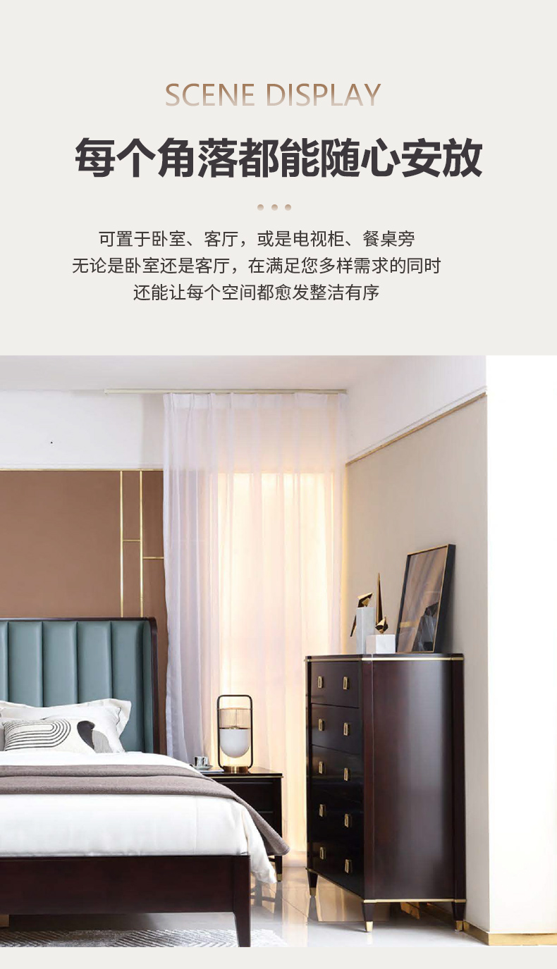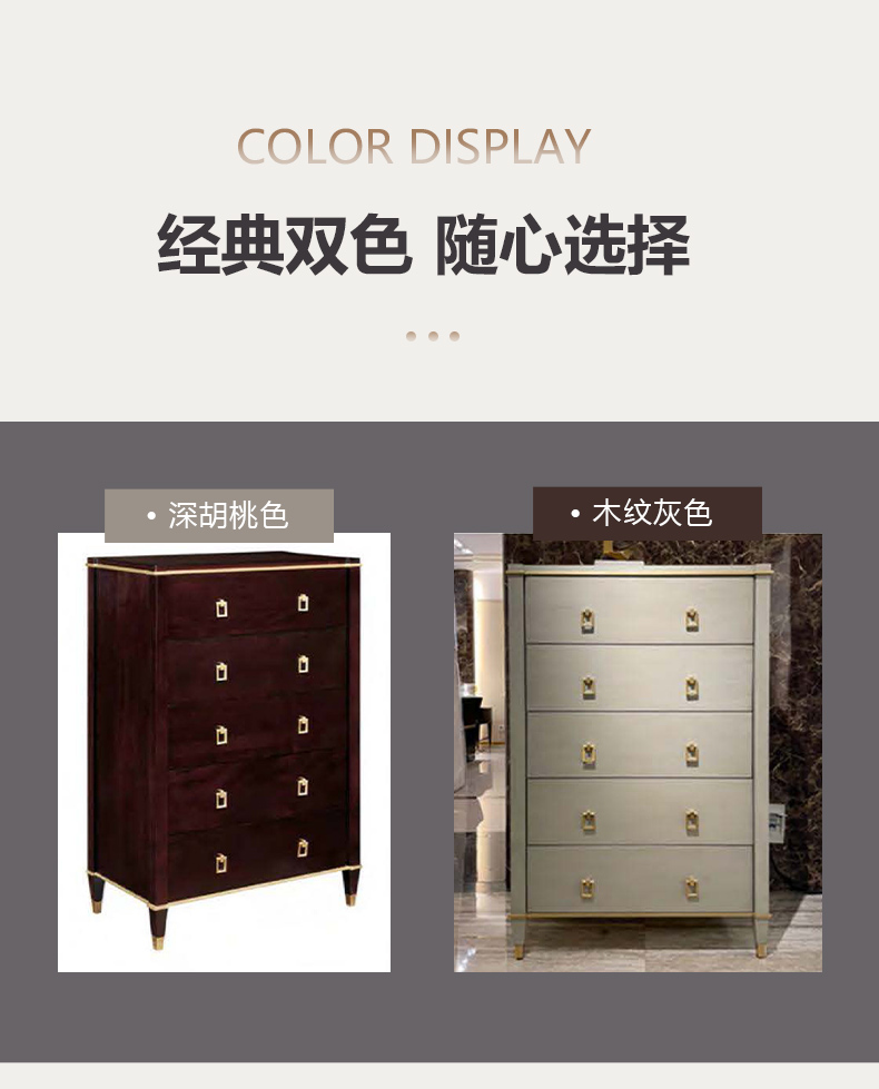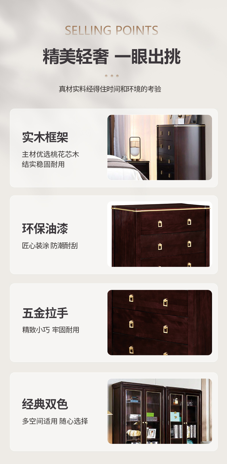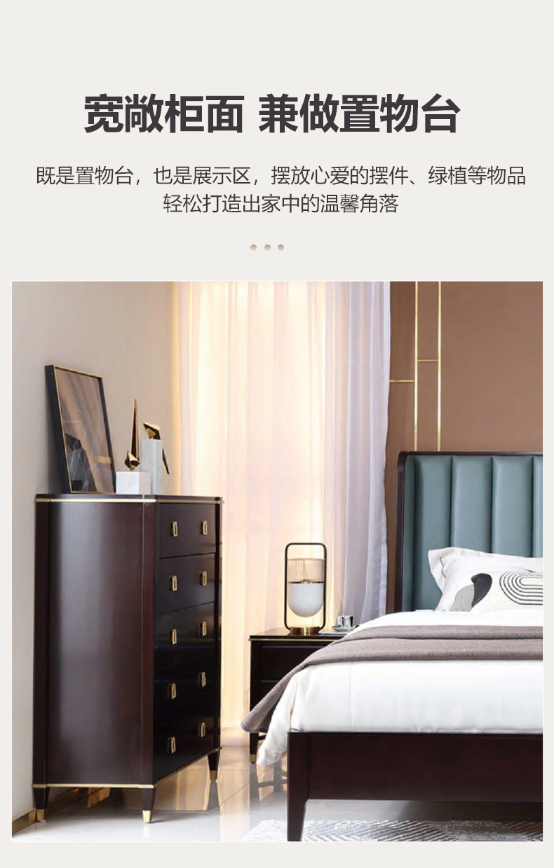 商品名称:【精品】千匠一品 美式轻奢风格 主材桃花芯木+辅材进口橡胶木+五金拉手 时尚大气骑士五斗柜M-DE608-J