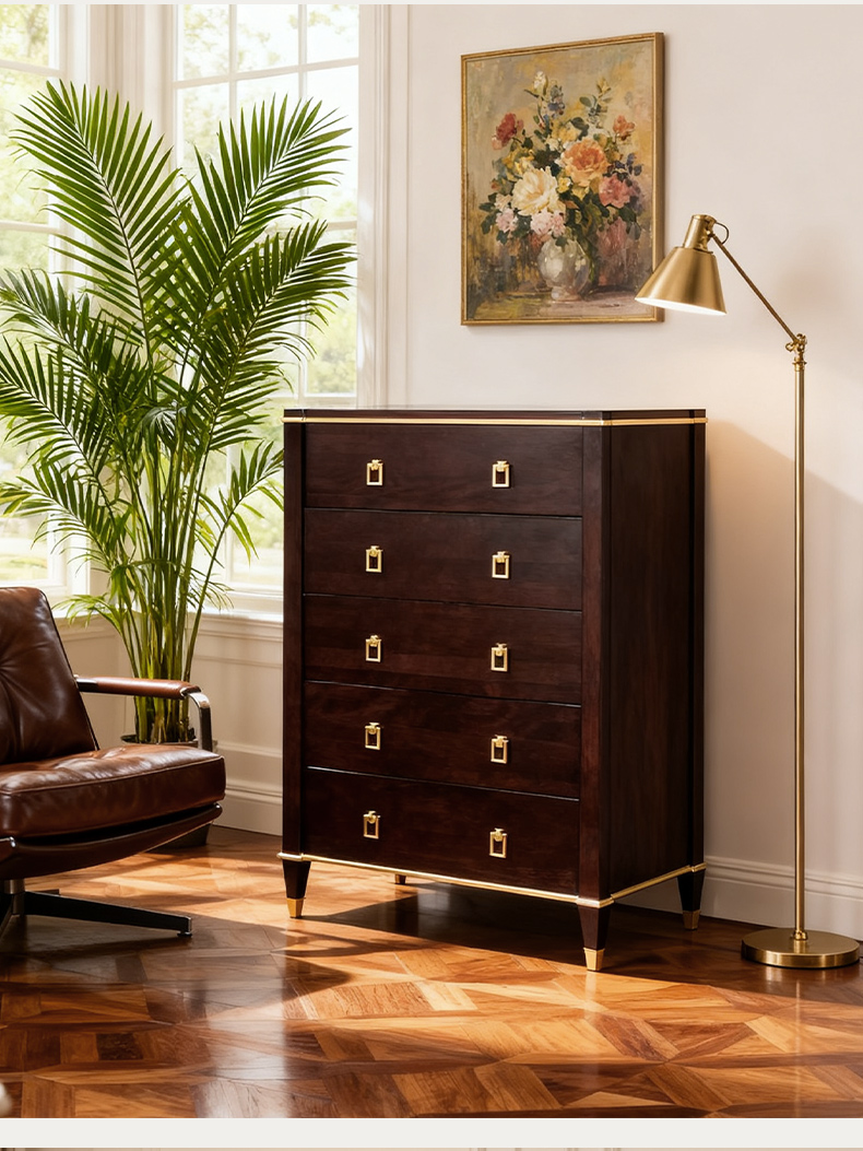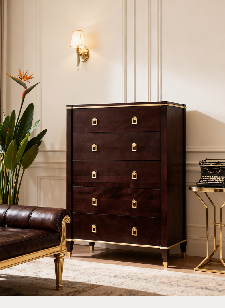 【精品】千匠一品 美式轻奢风格 主材桃花芯木+辅材进口橡胶木+五金拉手 时尚大气骑士五斗柜M-DE608-J