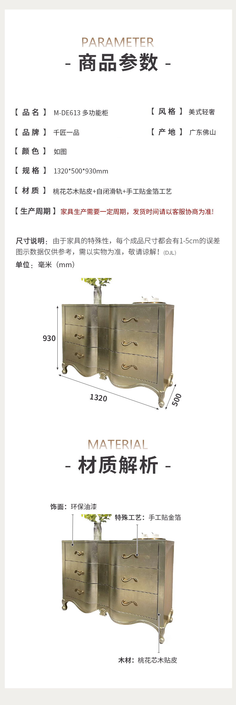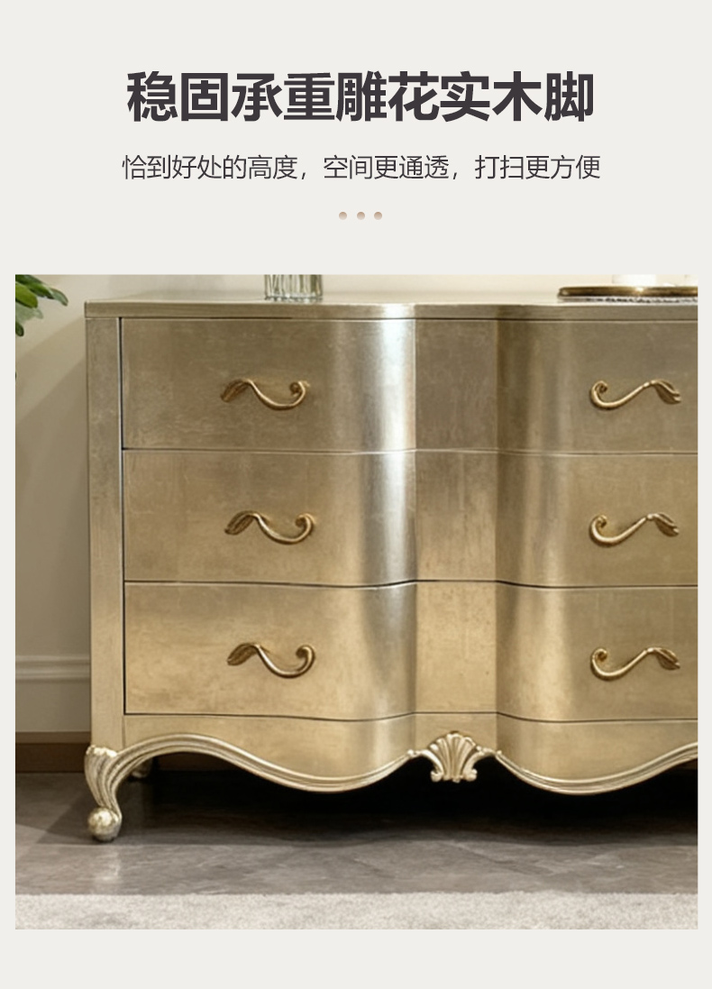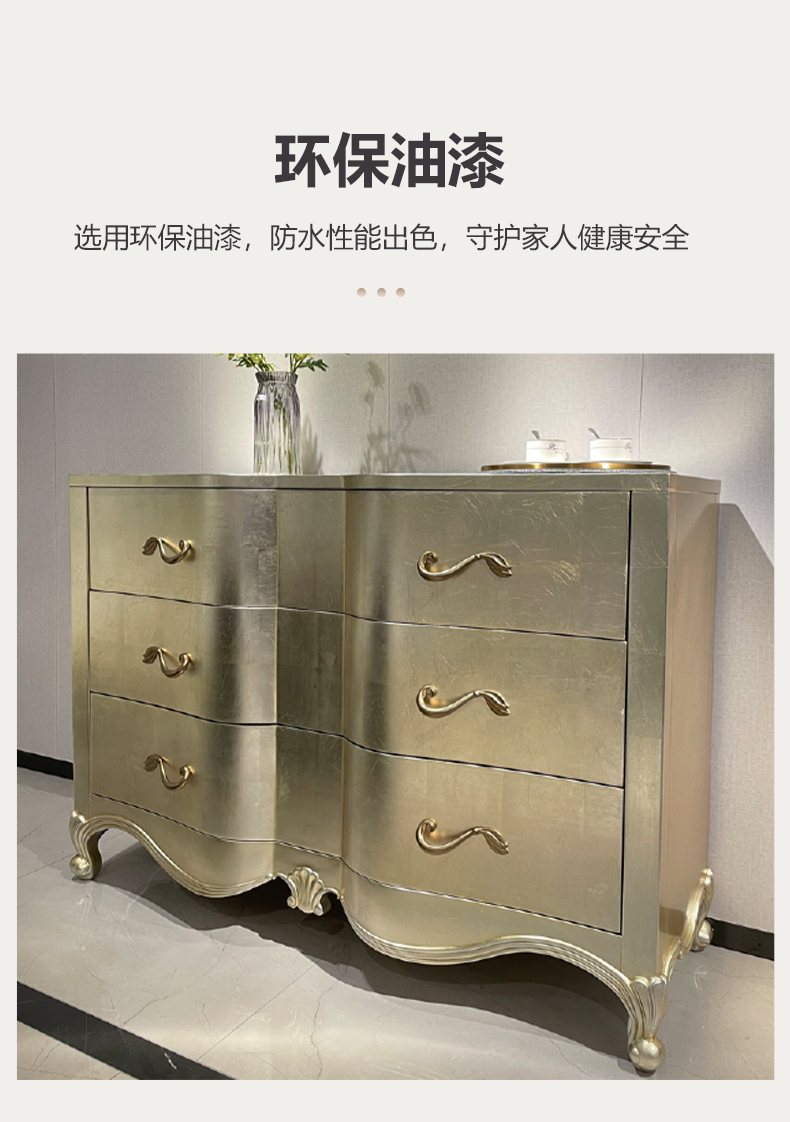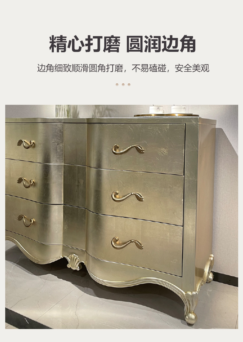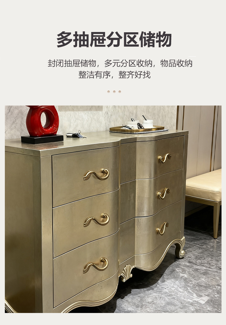 商品名称:【精品】千匠一品 美式轻奢风格 桃花芯木贴皮+自闭滑轨+手工贴金箔工艺 时尚大气亲密关系多功能柜M-DE613-J