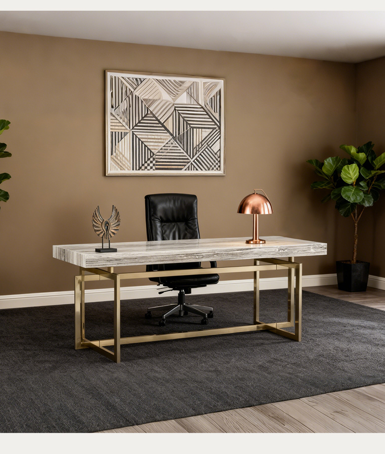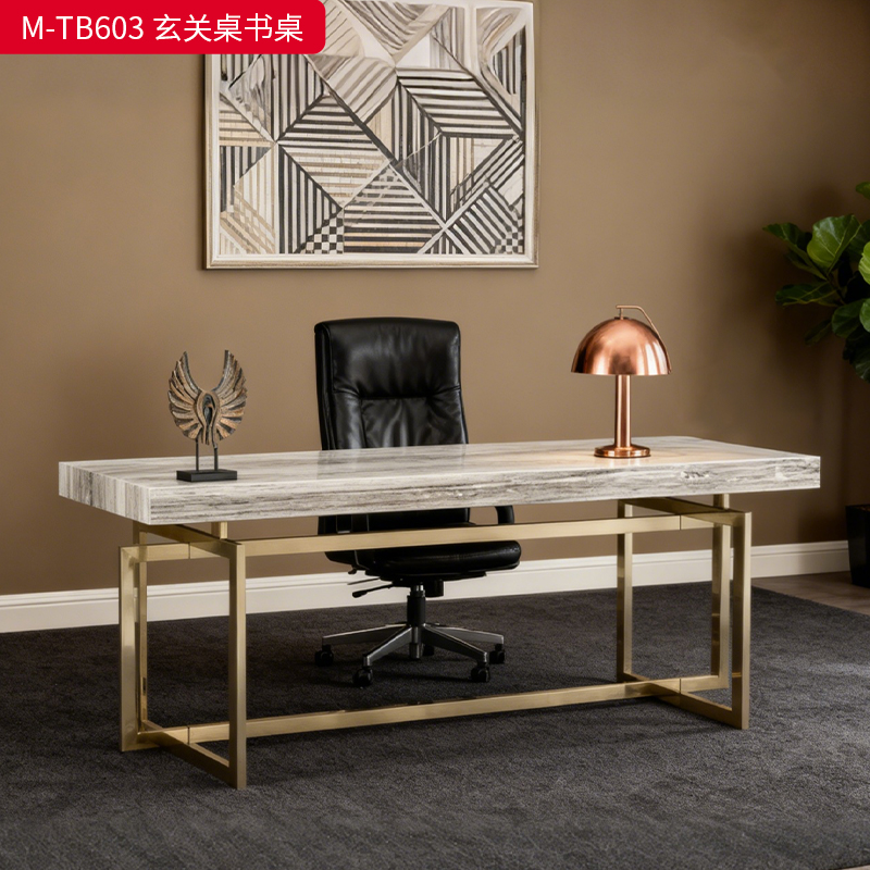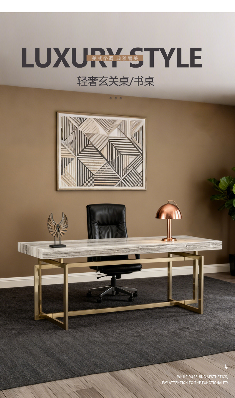 【精品】千匠一品 美式轻奢风格 蓝金沙大理石面板+不锈钢底座 时尚古典玄关桌书桌M-TB603-J