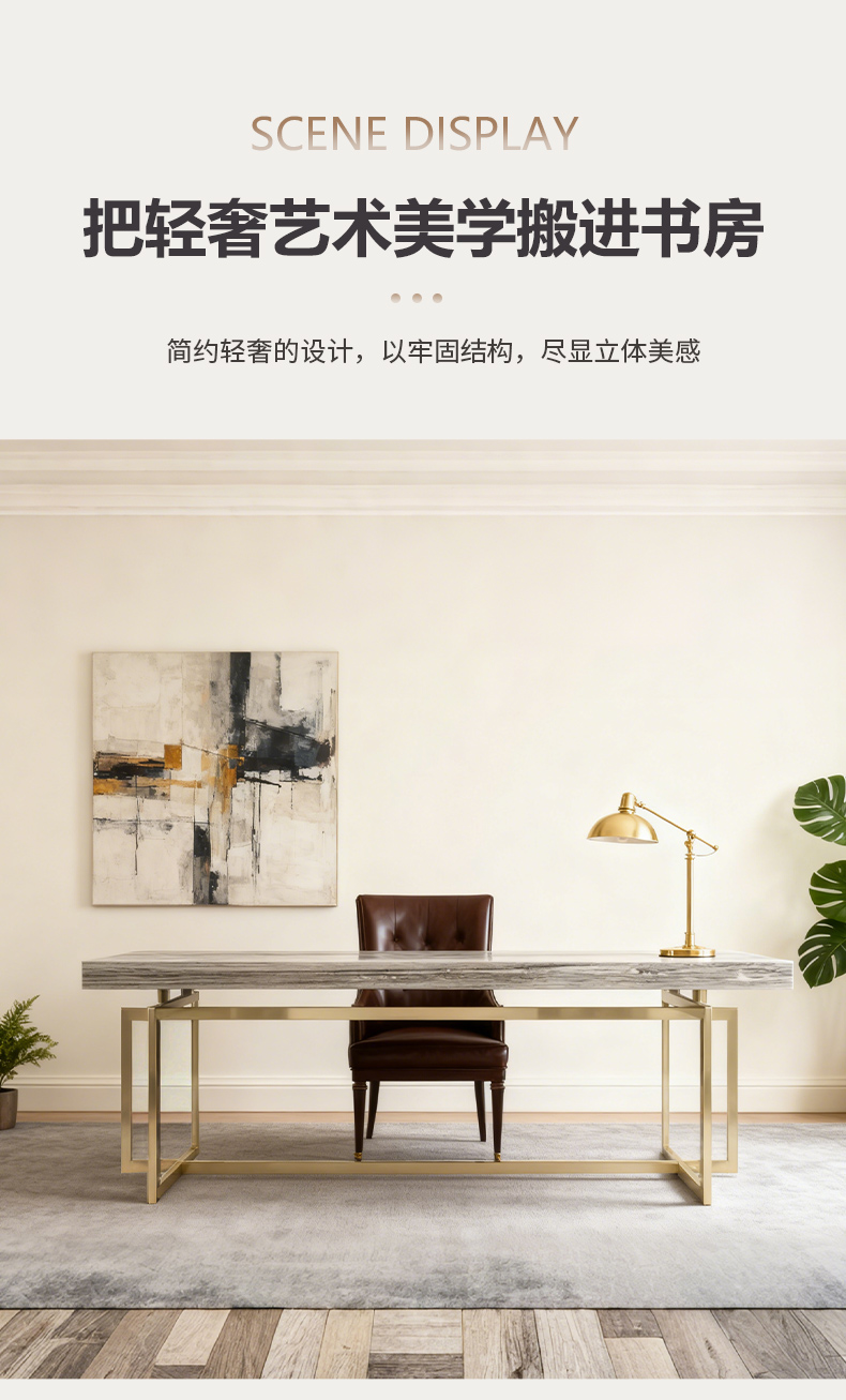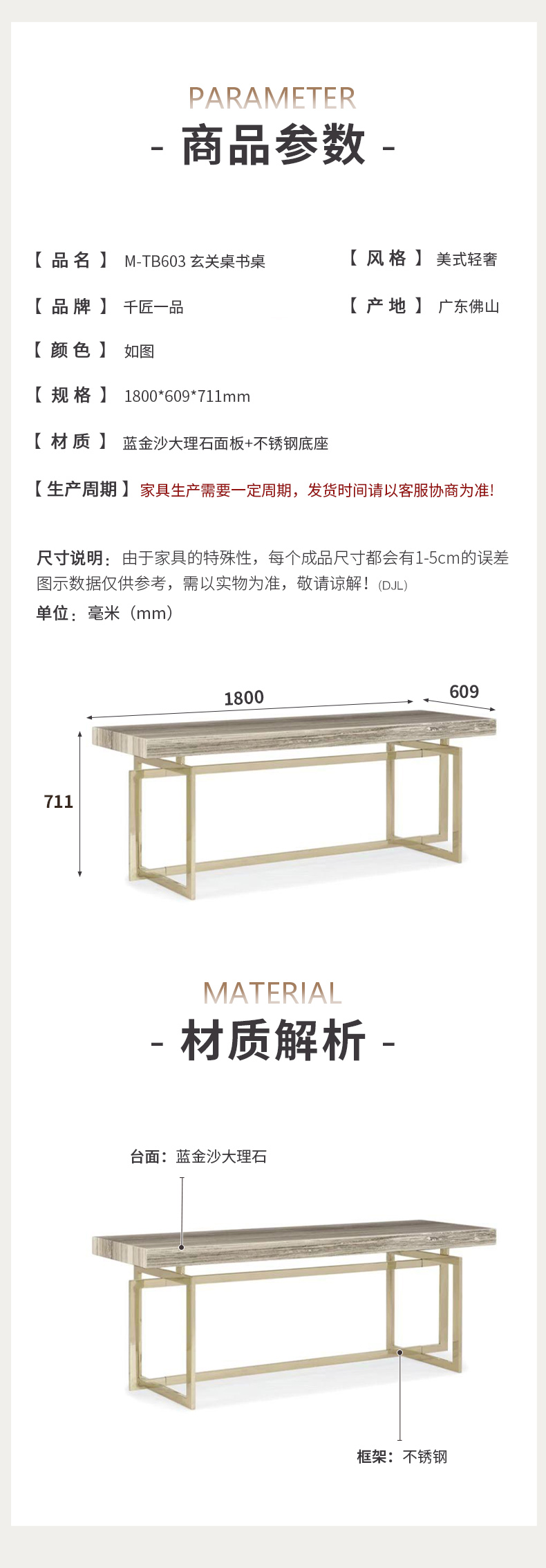 商品名称:【精品】千匠一品 美式轻奢风格 蓝金沙大理石面板+不锈钢底座 时尚古典玄关桌书桌M-TB603-J