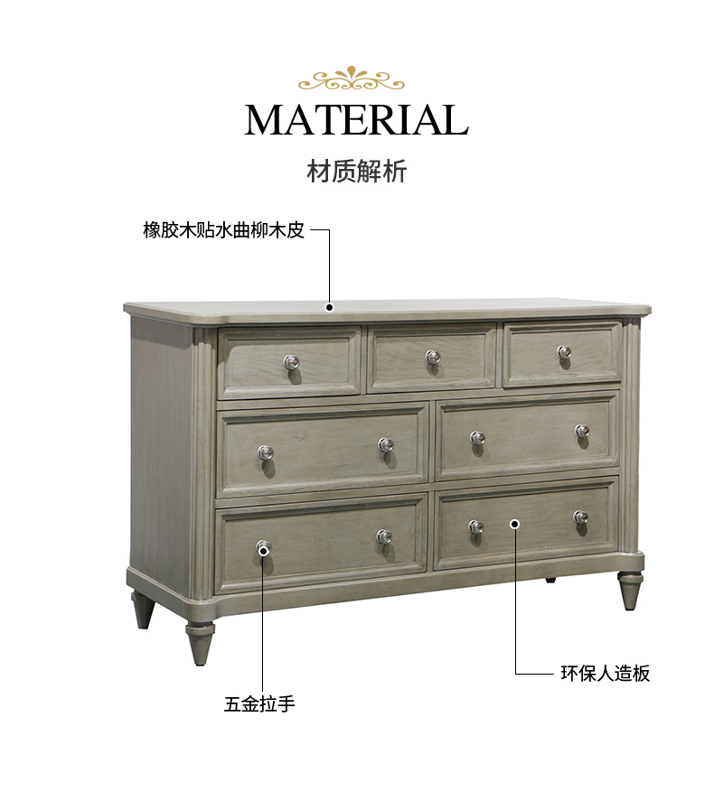 【精品】千匠一品 美式风格 橡胶木贴水曲柳木皮+环保人造板 时尚大气多功能柜BT-DE001-L