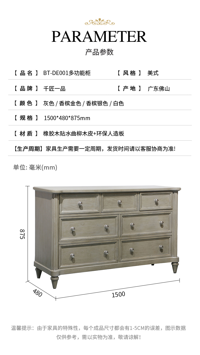 商品名称:【精品】千匠一品 美式风格 橡胶木贴水曲柳木皮+环保人造板 时尚大气多功能柜BT-DE001-L