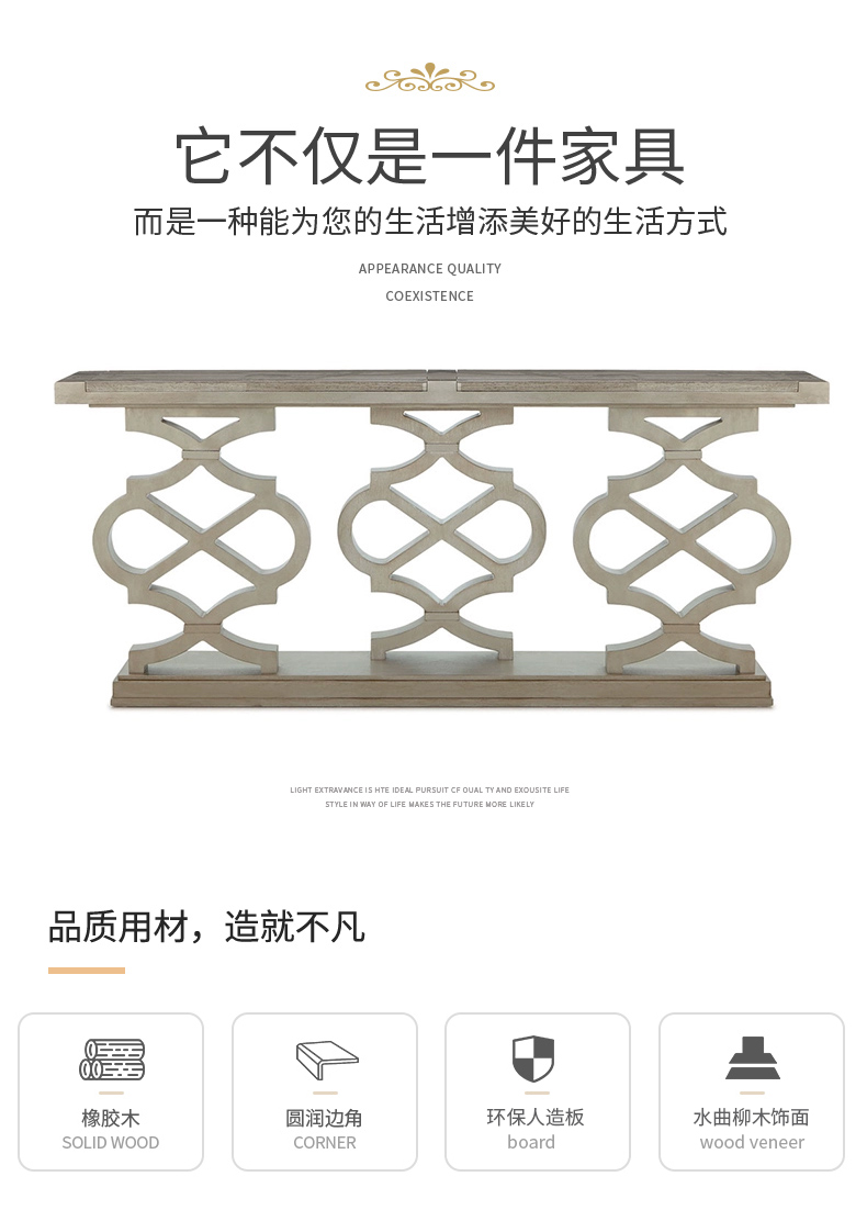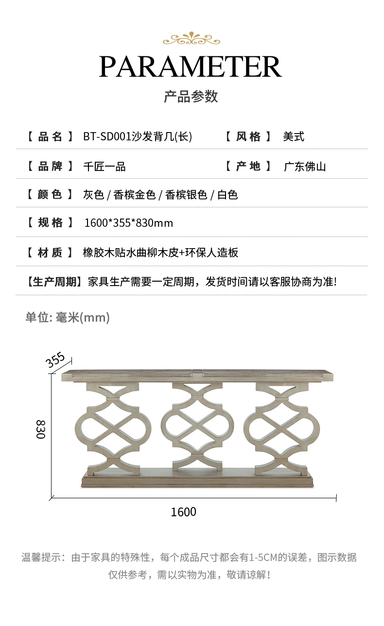 商品名称:【精品】千匠一品 美式风格 橡胶木贴水曲柳木皮+环保人造板 时尚大气沙发背几BT-SD001-L