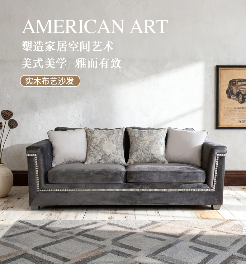 【精品】千匠一品 美式风格 橡胶木+布艺面料 时尚古典沙发BT-SF001-J
