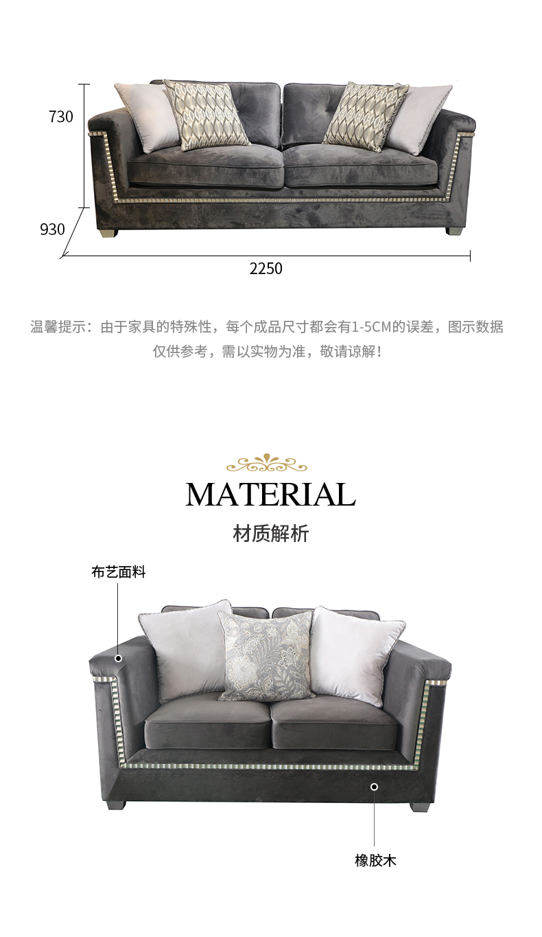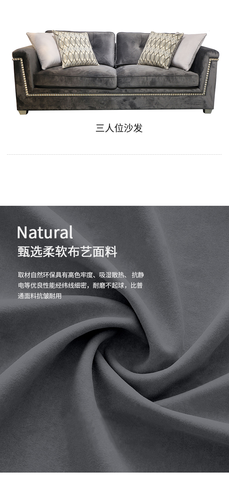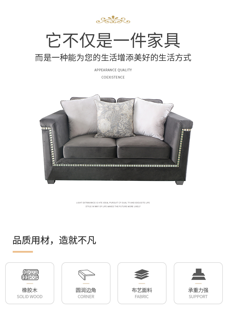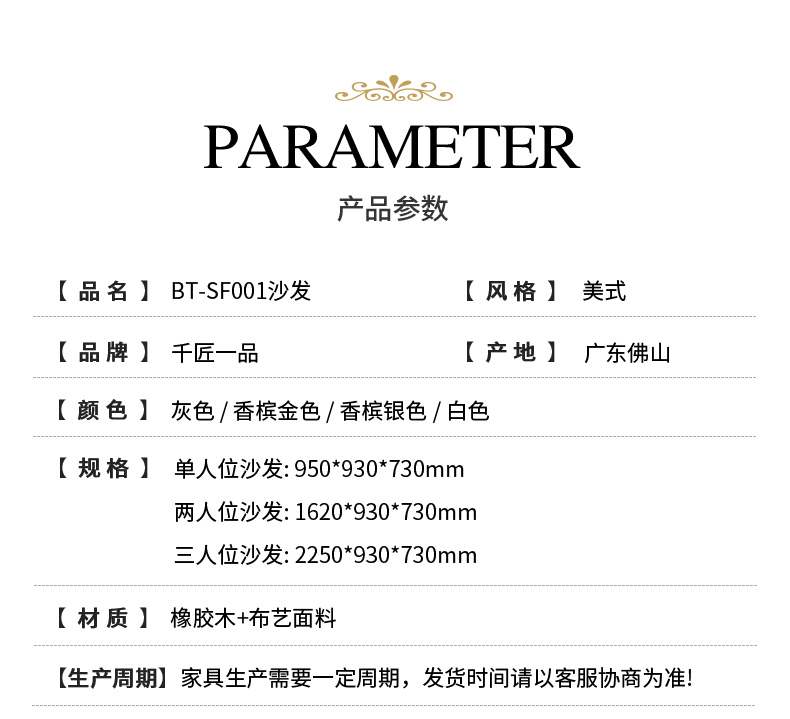 商品名称:【精品】千匠一品 美式风格 橡胶木+布艺面料 时尚古典沙发BT-SF001-J